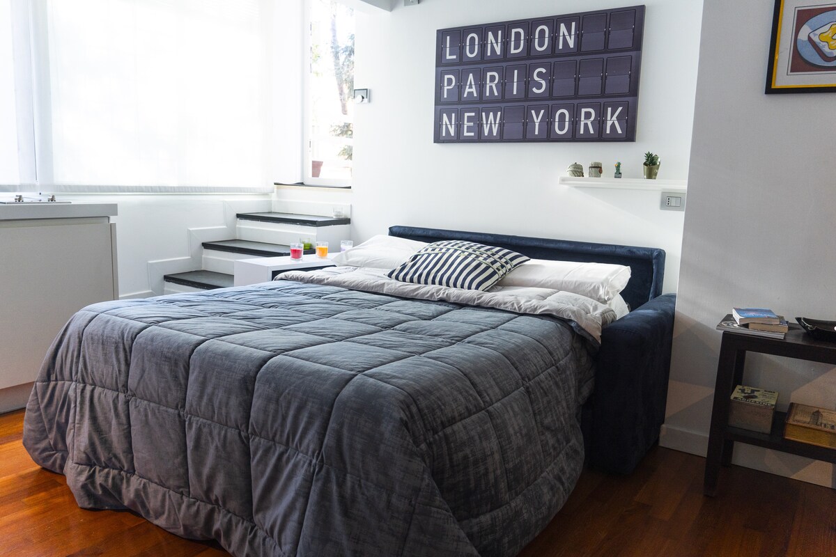 It is a lovely two-room apartment in a residential area. It is located in front of Veio park and at night it is very quiet. The location is excellent for those moving towards the center of Rome, the Olympic stadium, the Auditorium, Ponte Milvio, Marymount and AOSR but it is also 5 minute drive from the ring road. It is very close to the three main hospitals of the area, Gemelli (15 min by car), San Pietro and Sant Andrea (5 min by car). Recently renovated, it has modern and elegant furnishings.