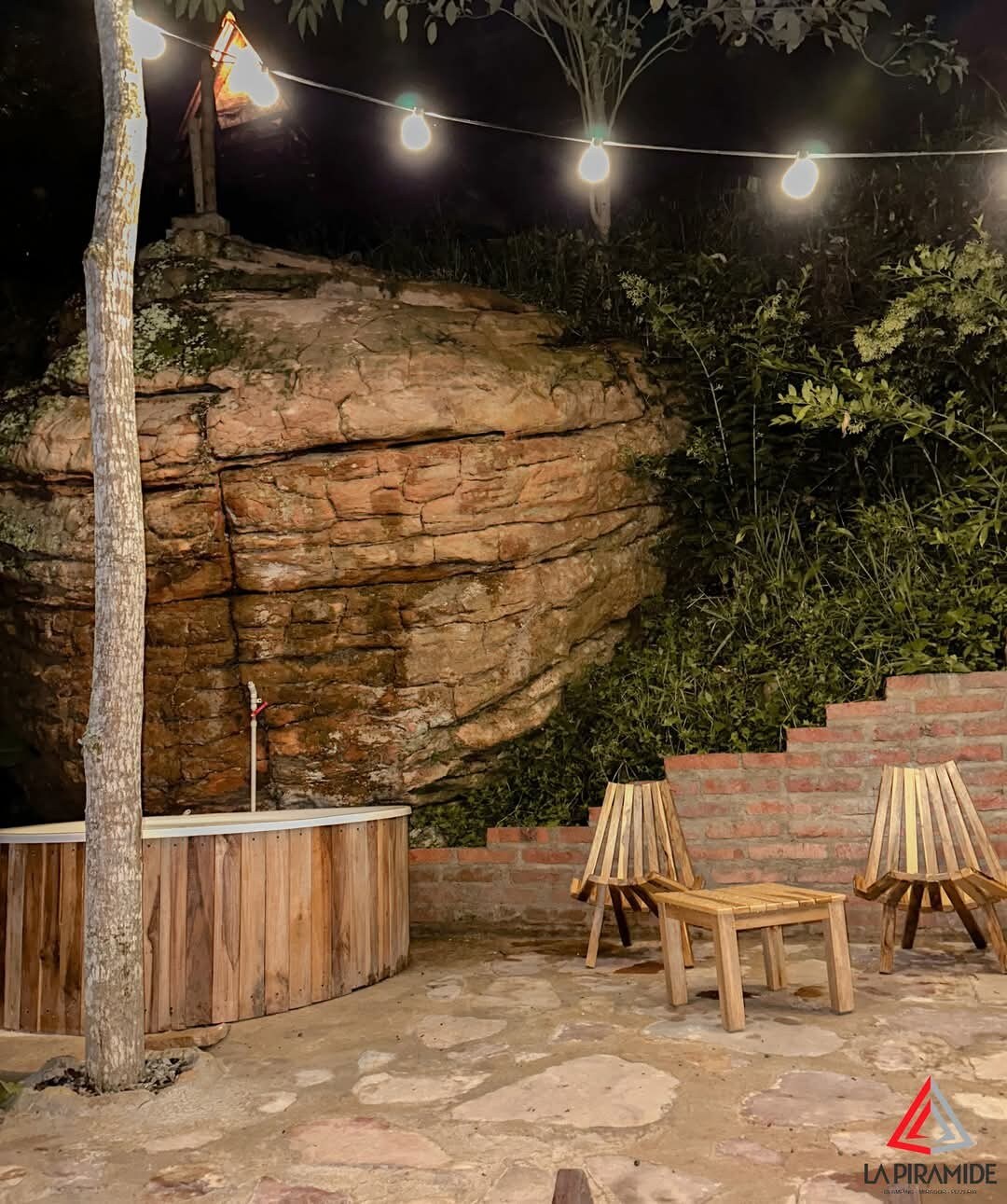 La doar 50 de minute de Bucaramanga, garantăm un loc spațios și liniștit, pentru a vă bucura de o noapte privind stelele și un răsărit de soare cu priveliștea frumoasă a canionului Chicamocha. În cazarea noastră, în plus față de cabana ta, găsești o cameră spațioasă din bambeadero care evocă mambeaderos utilizate de indigenii noștri, un jacuzzi natural orientat spre munte, o fântână cu trei oglinzi de apă pentru a te bucura de sunetul său și de un punct de vedere. Toate acestea îți permit să te odihnești și să te deconectezi.