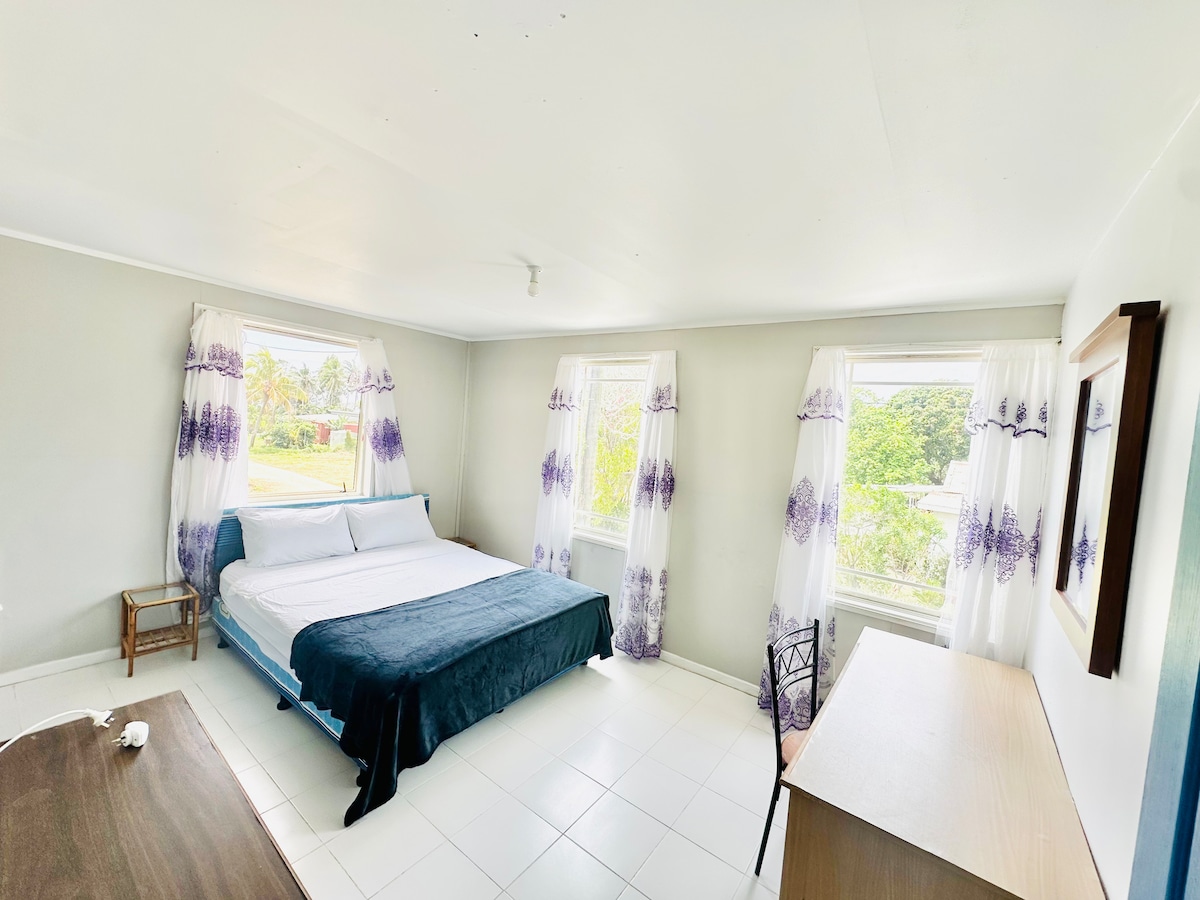 Această casă spațioasă, renovată, cu 6 camere, se află în partea de sud a orașului Tonga, pe malul apei, la 20 de minute de centrul orașului Nuku'alofa. Suntem liniștiți, curați și ordonați. Ieși de pe peluză și mergi pe jos până la plajă. Bucură-te de priveliști fantastice asupra Oceanului Pacific. Adu-ți echipamentul de plajă pentru a te bucura de o vacanță de familie relaxată sau de o escapadă cu prietenii. Poate găzdui între 1 și 12 persoane Notă: 1-4 persoane primesc întreaga casă, dar facem paturi doar în partea de 1 etaj (2 paturi/1 baie) 5-12 persoane primesc întreaga casă (6 paturi / 3 băi)