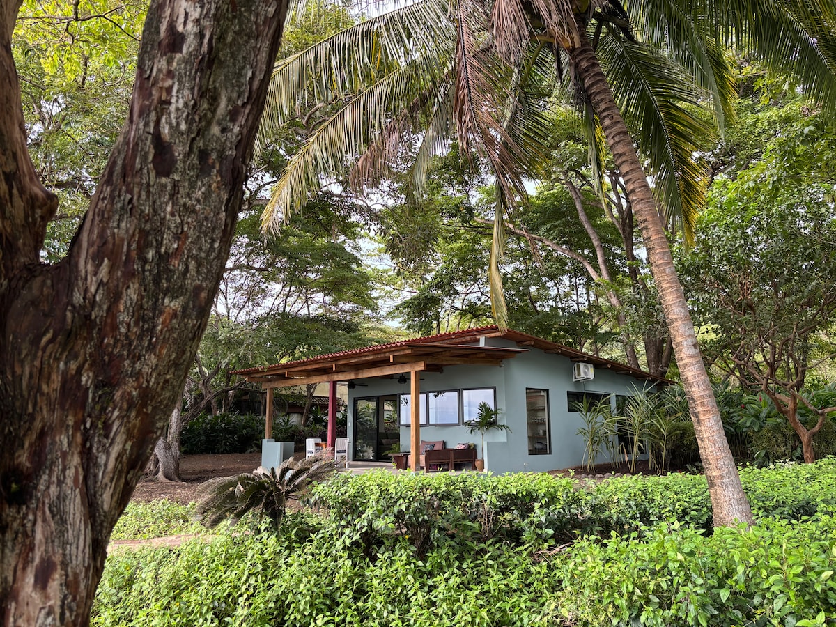 Nestled in tropical gardens just steps from Cambutal’s ideal black sand beach, this one-bedroom rental blends rustic charm with modern comfort. The bedroom has a king bed that can be converted into two twin beds, and dedicated workstation. The living area boasts a cozy sofa and windows that frame ocean views, while the kitchen includes a stove, oven, and stainless steel cookware. Outside is a private patio. Air conditioning, hot water, high-speed WiFi, and a backup generator are included.