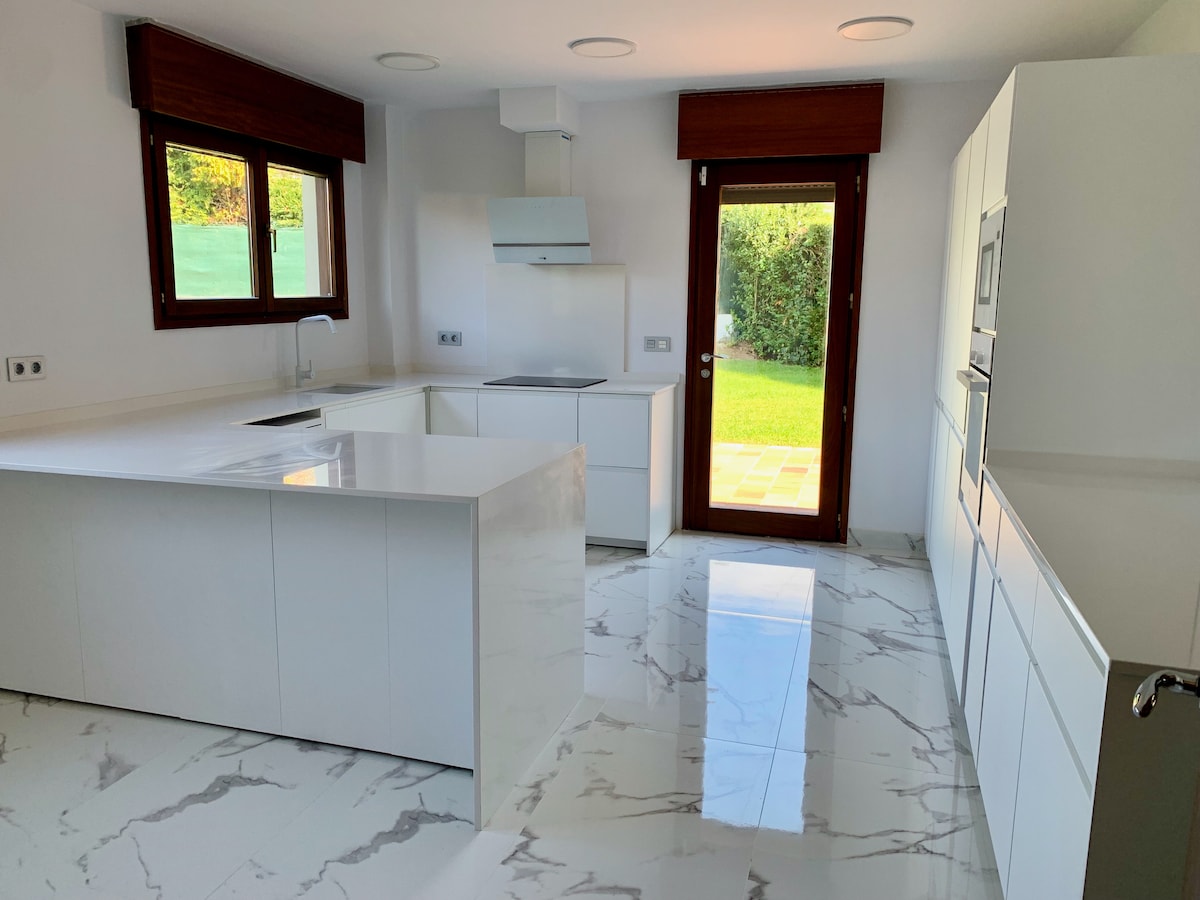 Vilă frumoasă cu 2 etaje pentru 10 persoane, la numai 350 de metri (4 minute de mers pe jos) de minunata plajă Rodiles (și de plaja liniștită din apropiere din Misiego), cu un jacuzzi mare, pentru 3 persoane și o priveliște uluitoare asupra riei Villaviciosa (estuarul rezervației naturale). Casa este foarte bine echipată, iar grădina are pomi fructiferi și locuri de odihnă. Sunt disponibile o mulțime de echipamente pentru sporturi nautice. Sistem de încălzire foarte bun.
