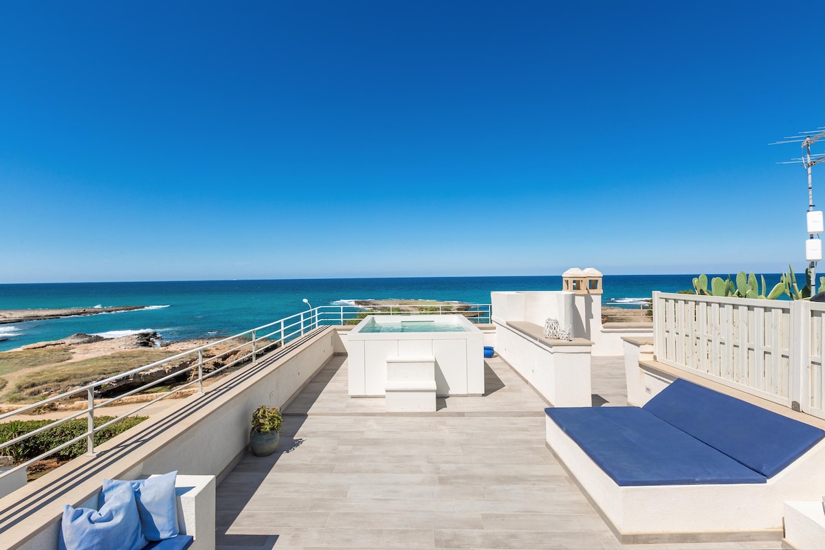 În această vilă de pe malul mării, ușor subevaluată, te trezești cu sunetul valurilor, savurând cafea și urmărind răsăritul soarelui peste mare. Pentru a încheia ziua, un pahar de vin la apus și cină sub stele. 2 dormitoare, 1 baie, o verandă mobilată și acces imediat la mare (pentru scufundări de pe stânci) și la micile golfuri cu nisip. La centrul orașului Torre Santa Sabina se poate ajunge pe jos, oferind restaurante, saloane de înghețată și toată aroma Puglia autentică