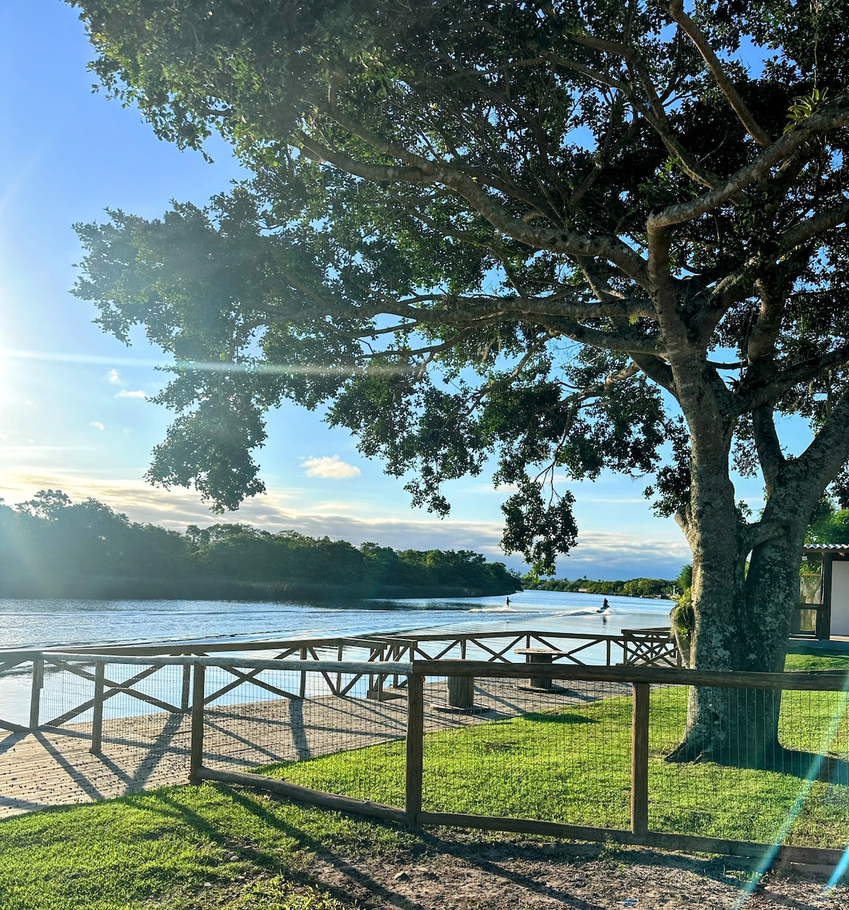 Relaxează-te în acest loc unic și liniștit de la marginea râului Mampituba. Casa oferă toată liniștea și confortul pe care le meriți pentru vacanța ta. Adu-ți familia și vino să te bucuri de acest loc minunat. Casa este nou-nouță, cu toate mobilierul, paturile, saltelele și accesoriile achiziționate recent. Conține aer condiționat în două dormitoare. În bucătărie, aragaz, microunde și cuptor electric. Curtea este largă și complet închisă. Are rampă de acces la barcă și jet ski
