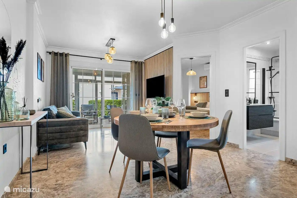 Apartament de lux pentru până la 6 adulți și 2 copii, cu o terasă privată împrejmuită de 120 m², situat într-o urbanizare mică, dar elegantă, de înaltă clasă, cu spa și sală de gimnastică, aproape de magazine și restaurante. La doar 6 minute de mers cu mașina de liniștita Playa de Punta Prima și la 9 minute de faimoasa plajă La Zenia. Acest apartament nu este disponibil pentru grupuri de tineri. Cererile de la utilizatorii fără recenzii Airbnb pozitive nu vor fi acceptate.
