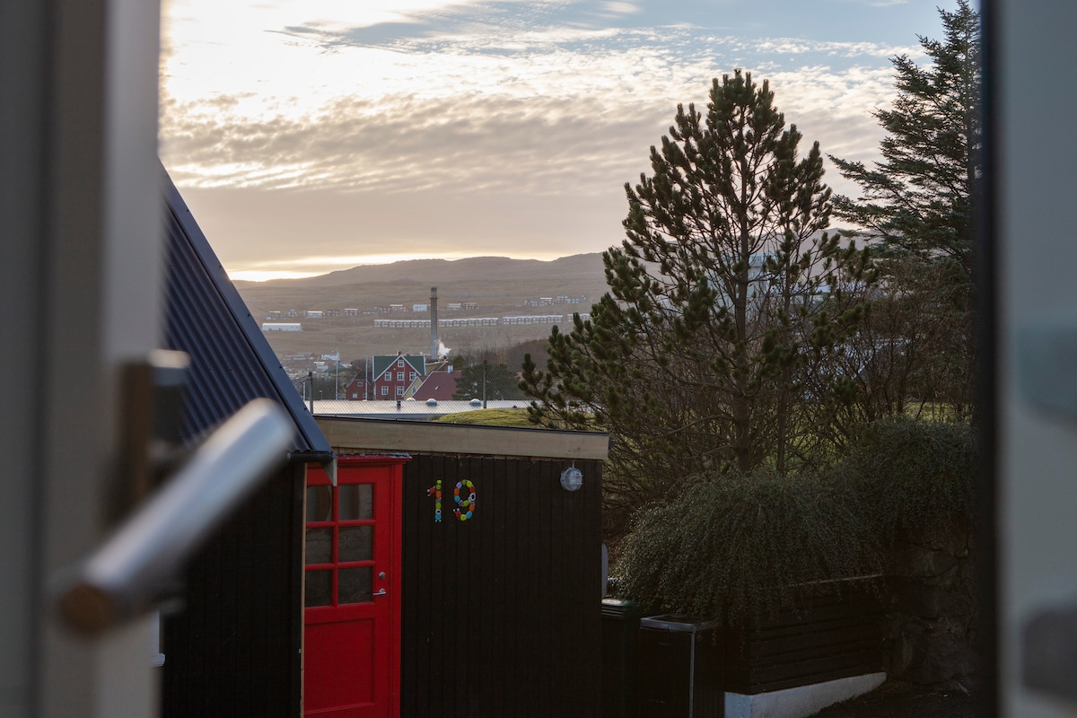 Bine ai venit în acest apartament minunat, cu vedere impresionantă la cartier, la mare și la frumoasa insulă Nólsoy. Aici vă puteți relaxa și vă puteți bucura de priveliștea navelor și a bărcilor mici de pescuit, permițându-vă în același timp să vă fascinați de peisajul calm și frumos – oaspeții au petrecut ore întregi bucurându-se pur și simplu de această experiență! Loc de parcare mare. Închiriezi apartamentul: • Bucătărie/cameră de zi într-una cu priveliști minunate. • Dormitor cu pat dublu • Hol și baie Petrecerile nu sunt permise.