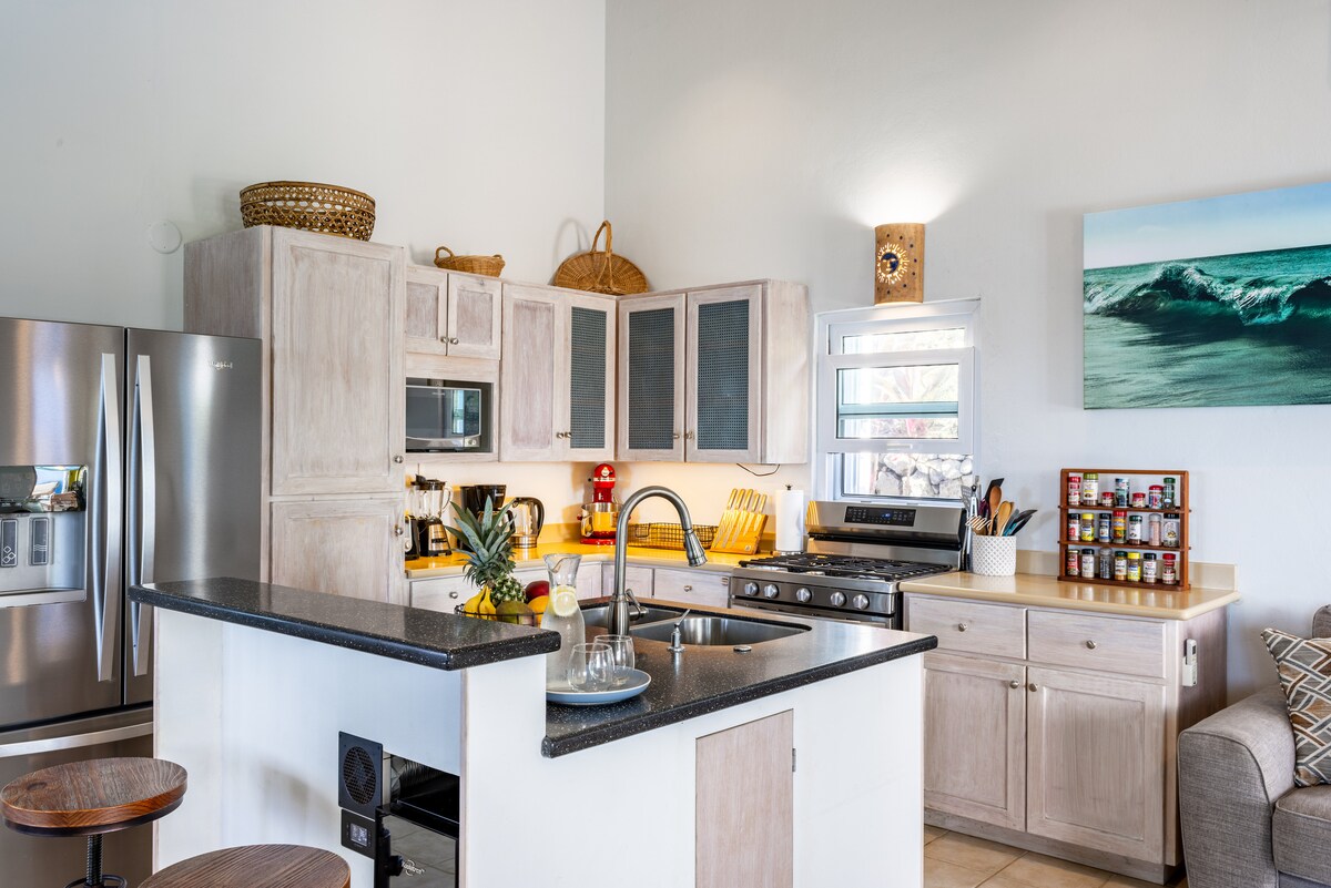 Complet renovat, cu vedere uimitoare la ocean! Loft at Casa Caribe este o vilă privată cu vedere la ocean, cu bucătărie completă, dormitor matrimonial privat (situat în mansardă)și sufragerie. Vila Loft are aer condiționat nou instalat! Priveliștea frumoasă a oceanului poate fi văzută din casă și verandă privată pe malul oceanului și o nouă terasă la soare.