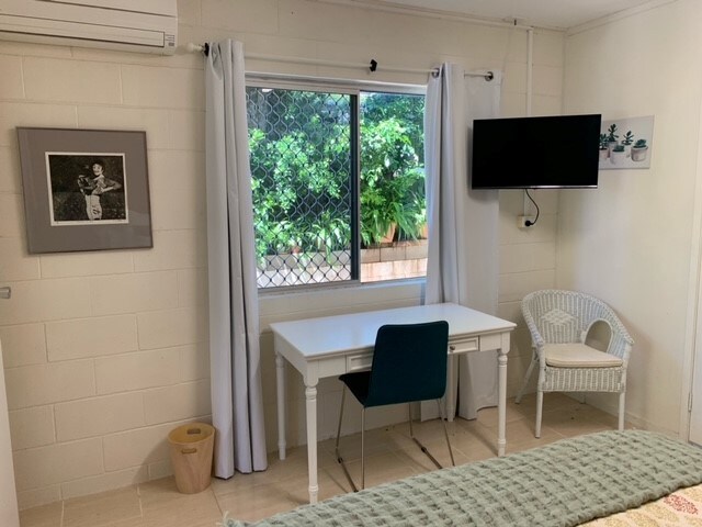 This ground floor garden unit is part of a residential home, (on a quite street) set in a lush tropical garden with drive way parking. This 2 bedroom unit can accommodate 4 guests. It is in walking distance to Rowes Bay beach, a park, historic Jezzine Barracks, The Strand, coffee shops, a mini mart, scooter hire & a bus stop. Also, a 10 min drive away is the airport, CBD, Magnetic Island terminal & Casino. There is a complementary breakfast left in our guests’ fridge for your convenience.