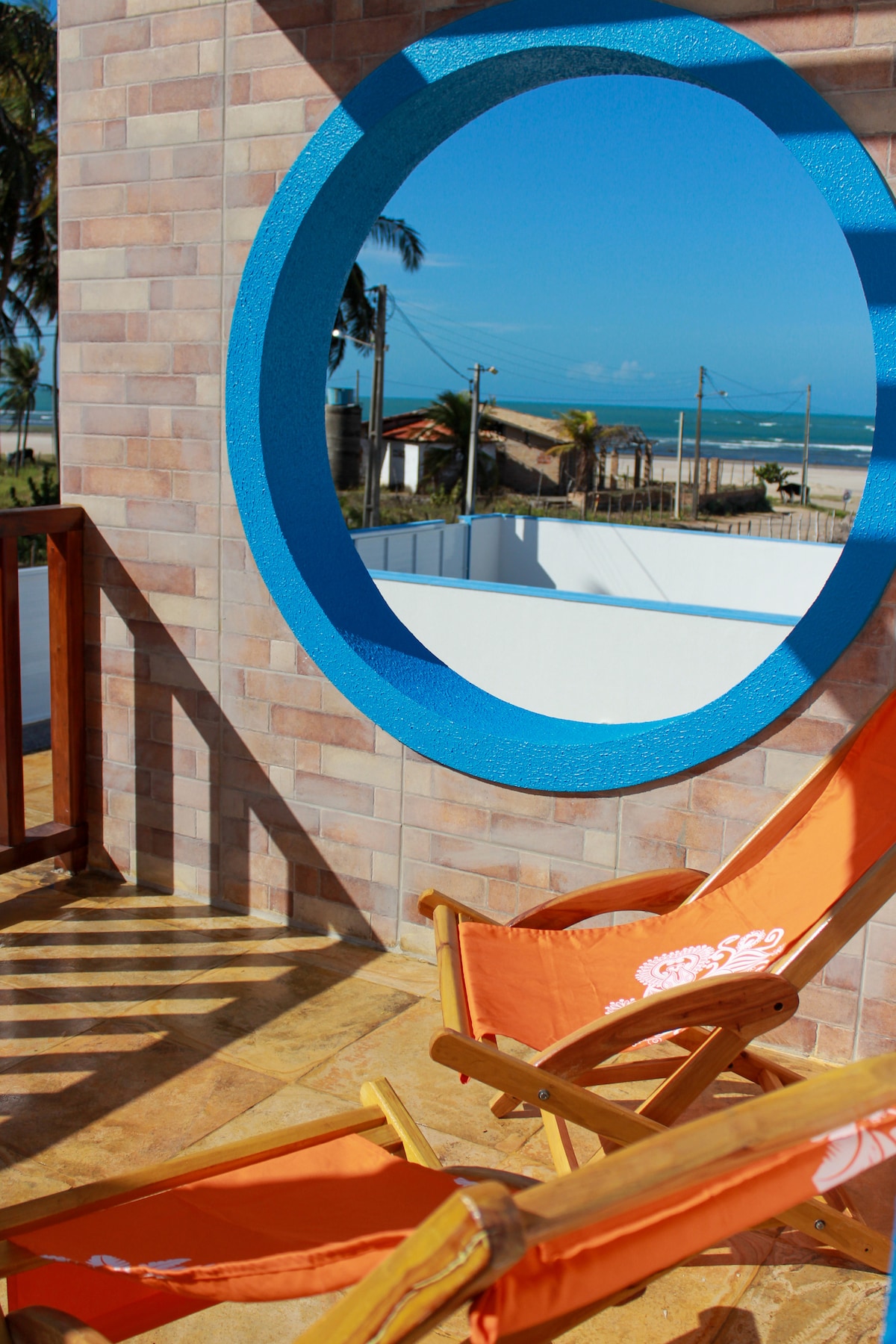 Îți amintești „Mamma Mia!” și „Înainte de miezul nopții”, cu case văruite în alb, cu un aspect pătrat, cu un acoperiș albastru strălucitor, uși și ferestre lângă mare? Ei bine, aceasta este o casă cu arhitectură grecească de pe coasta braziliană. Un spațiu confortabil cu 4 apartamente cu pat super king-size, bucătărie, living, aer condiționat, mobilat. Există 3 apartamente cu 18 m2 și 1 apartament cu 27 m2, cu o cadă panoramică și un balcon plăcut, toate la 1 minut de nisip de plajă, într-un paradis numit Flecheiras.