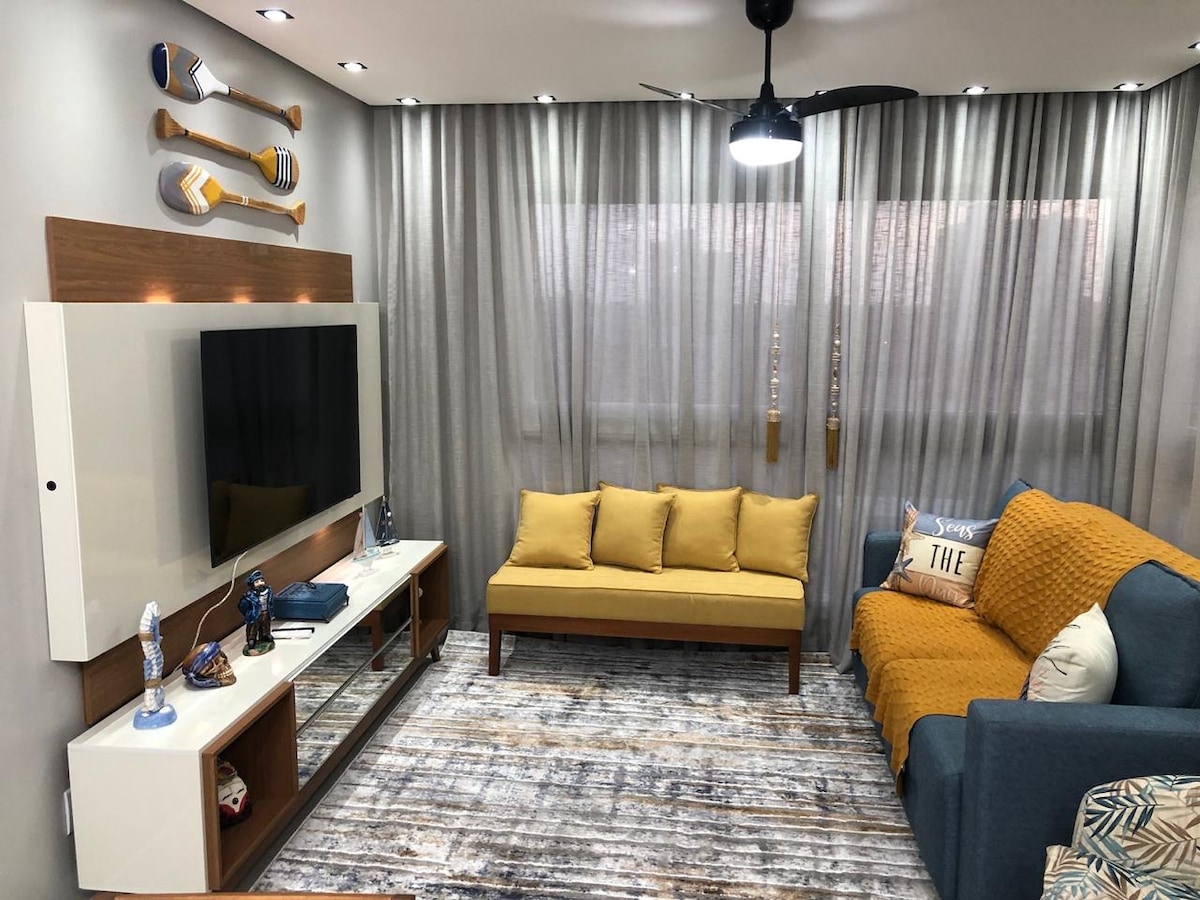 Bulevardul Marcílio Dias, 1058, la 200 m de noua faleză din Tramandai. AP TOP, standard ridicat de calitate și confort. Pentru persoane exigente. Apartament complet mobilat de 5 stele, la 2 străzi de mare (200 de metri) - SMART TV 32 inci în living - Wi-Fi - Aer condiționat în dormitor și în camera de zi. - Mașină de spălat - pot fi luate animale de companie MICI - PARCARE privată pentru 01 mașină - Bucătărie integrată, aragaz central, cuptor cu microunde și frigider fără îngheț. - Baie cu cutie de sticlă.