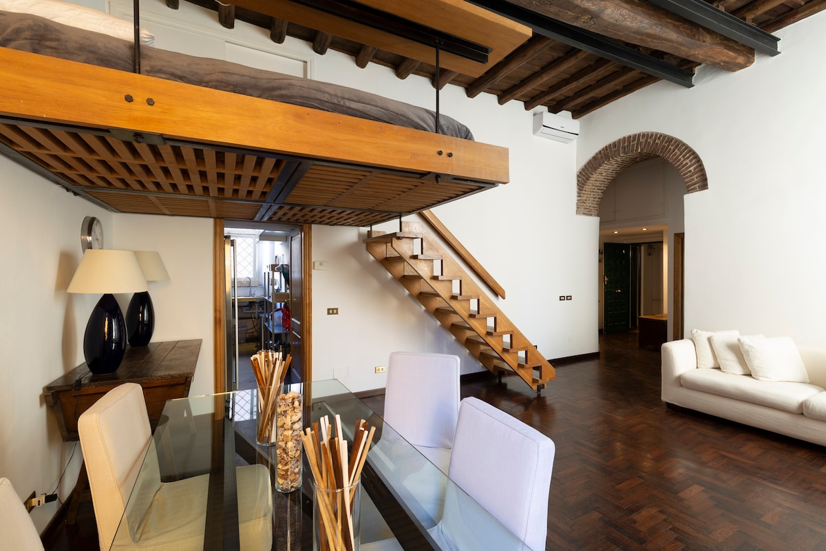 CIU 10076 Situat în inima uneia dintre cele mai pline de viață și mai autentice zone ale Romei, apartamentul combină farmecul orașului etern cu liniștea unei străzi retrase și are vedere la o mică grădină privată luxuriantă. Mobilierul și obiectele antice o fac deosebit de primitoare. Noul aer condiționat Daikin asigură prospețimea, chicineta echipată, Wi-Fi rapid și uscătorul automat de rufe îl fac perfect chiar și pentru șederi mai lungi.
