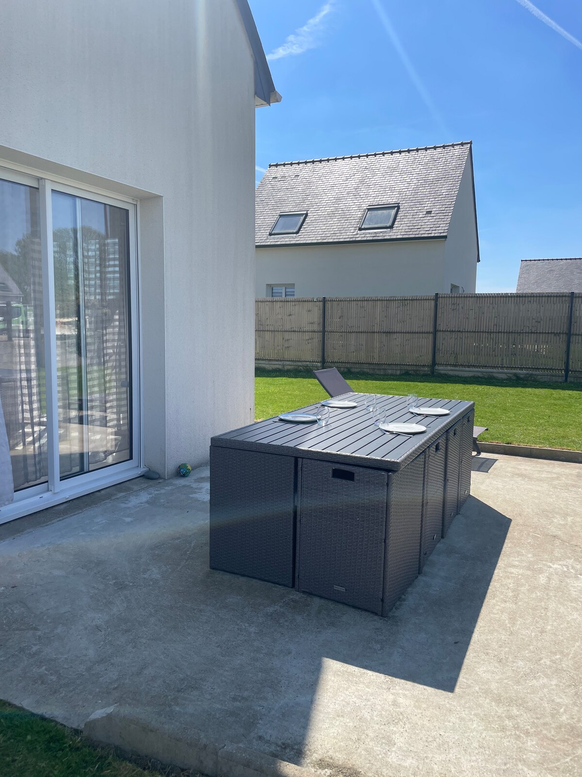 Entre terre et mer, proche du bourg, jolie maison entièrement rénovée en 2019, toute équipée, confortable et lumineuse. Dans un cadre verdoyant et calme, sans vis-à-vis. Dispose d'une cuisine, salon avec grand canapé confortable, une chambre avec lit king size, SDB (douche italienne), WiFi et TV (fibre). Une terrasse plein Sud permet de profiter des journées ensoleillées. Une seconde terrasse couverte avec espace clos permet l'accueil de votre animal. Les lits seront faits à votre arrivée.