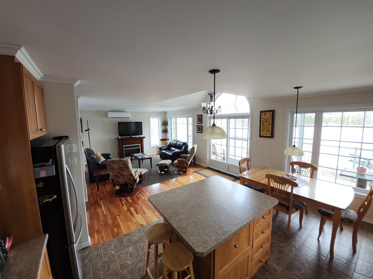 Simplifică-ți viața stând în această casă liniștită, bine situată. - Spa în aer liber cu vedere uimitoare la Lac Saint-Jean. Accesibil iarna - Acces direct la traseul de biciclete cu afine și pista de snowmobil. Garaj securizat pentru 4 snowmobile! - Magazin alimentar - Brutărie /magazin de brânzeturi - Microberărie - Restaurant - Club de Golf Parcare privată cu intrare separată. Poate găzdui 4 persoane cu dotări incluse. Toți sunt bineveniți!