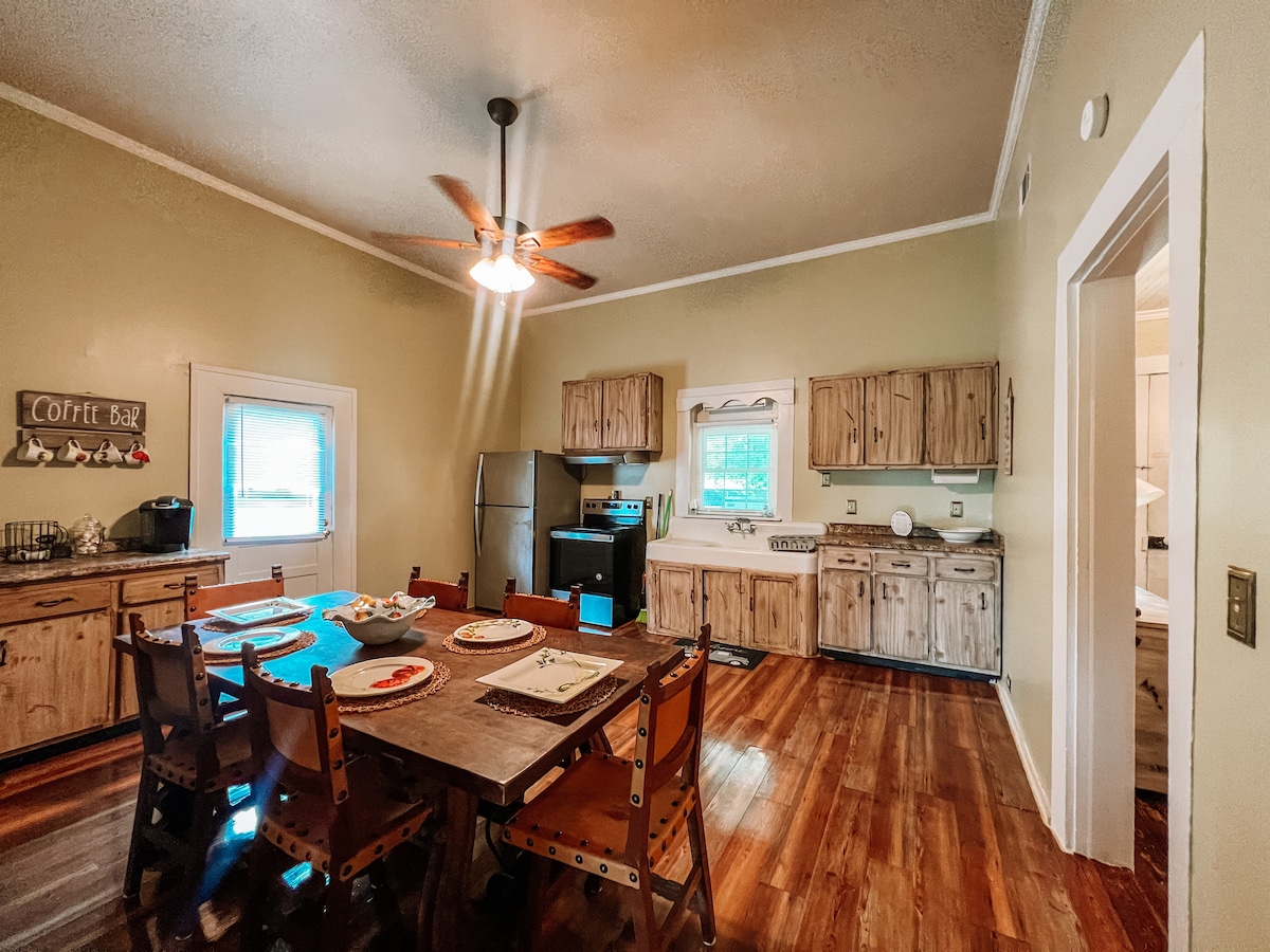 Această locuință se află în proprietatea familiei noastre de generații. Tocmai a finalizat o renovare și este gata să petreci ceva timp de calitate în pitorescul oraș sudic Tarrytown. Casa a fost construită în anii 1930 și are o verandă spațioasă cu scaune balansoar și o curte în spate împrejmuită cu terasă. Situat la 12 mile de autostrada 16, ieșirea 67 pe Hwy 29 sud. Convenabil pentru Colegiul Brewton Parker și Universitatea de Sud din Georgia și Hatch Plant dacă veți lucra acolo.