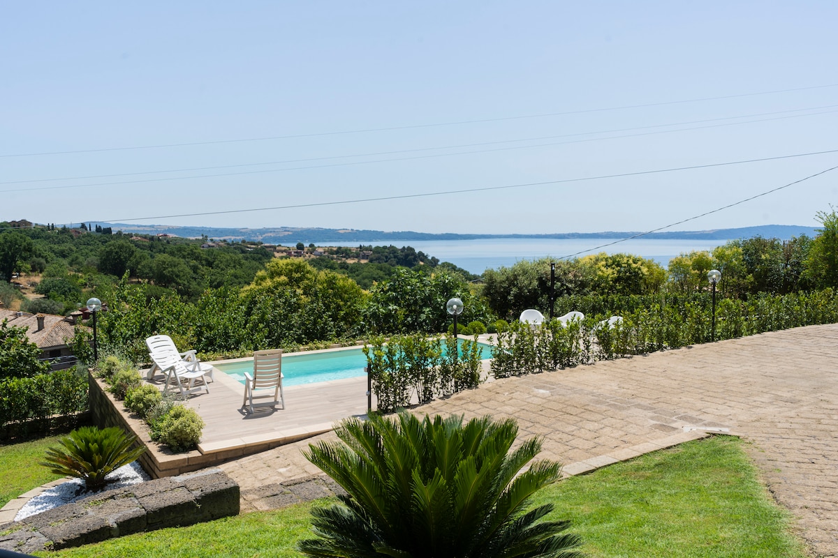 Vilă panoramică cu piscină pe lacul Bracciano