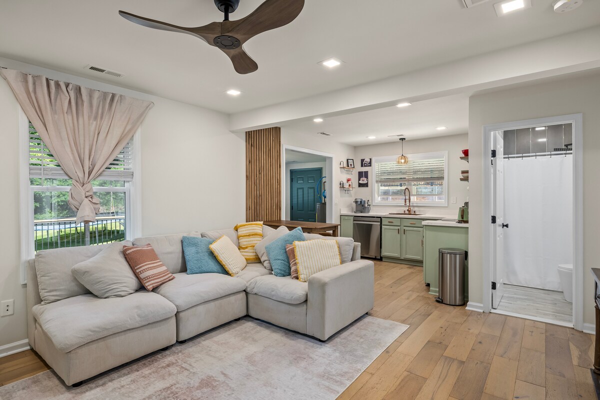 Un apartament privat la subsol cu intrare separată în locuința noastră din Montclair, VA, cu o ușă cu încuietoare pentru intimitate. Minute de la I-95. Acces comun la sala de gimnastică de acasă și la combinația de mașină de spălat/uscător. Intrarea și ieșirea se fac prin garaj, astfel încât nu vei avea nicio interacțiune zilnică cu gazdele, cu excepția cazului în care dorești acest lucru. Spațiul include o chicinetă, baie privată modernă, mobilier nou și podele noi din lemn de esență tare. Wifi și cablu Verizon sunt incluse.