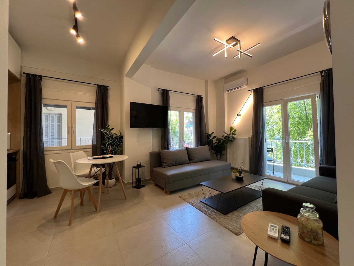 Unique 1 Bedroom fully equipped apartment on the seventh floor of a 2020 renovated building with a breathtaking terrace balcony. High speed internet, premium amenities, a luxurious queen size bed, and your very own Netflix account are but a few things we offer you. Luminous, spacious, with everything you might require to enjoy your stay in the heart of Thessaloniki's social life, only 5 minutes away from Aristotelous square and 2 minutes from the seafront. Welcome and enjoy your stay!