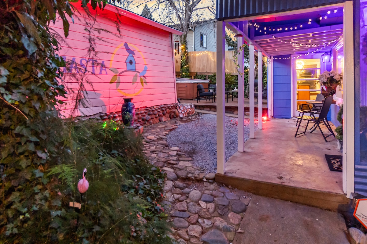 New, eco-friendly, modern home has all the amenities and 1-Gbps WiFi. Stunning 180-deg views by day and stargazers delight by night. For added luxury, enjoy the view from your private bathhouse with oversized clawfoot tubs; perfect for a long soak after a day in the mountains. Just 5 min from downtown Mt Shasta >2 mi from EV supercharger, with a variety of hiking trails outside your door. Our personal favorite is the Gnome Trail, full of whimsy! Your private oasis. Adults only and max 2.
