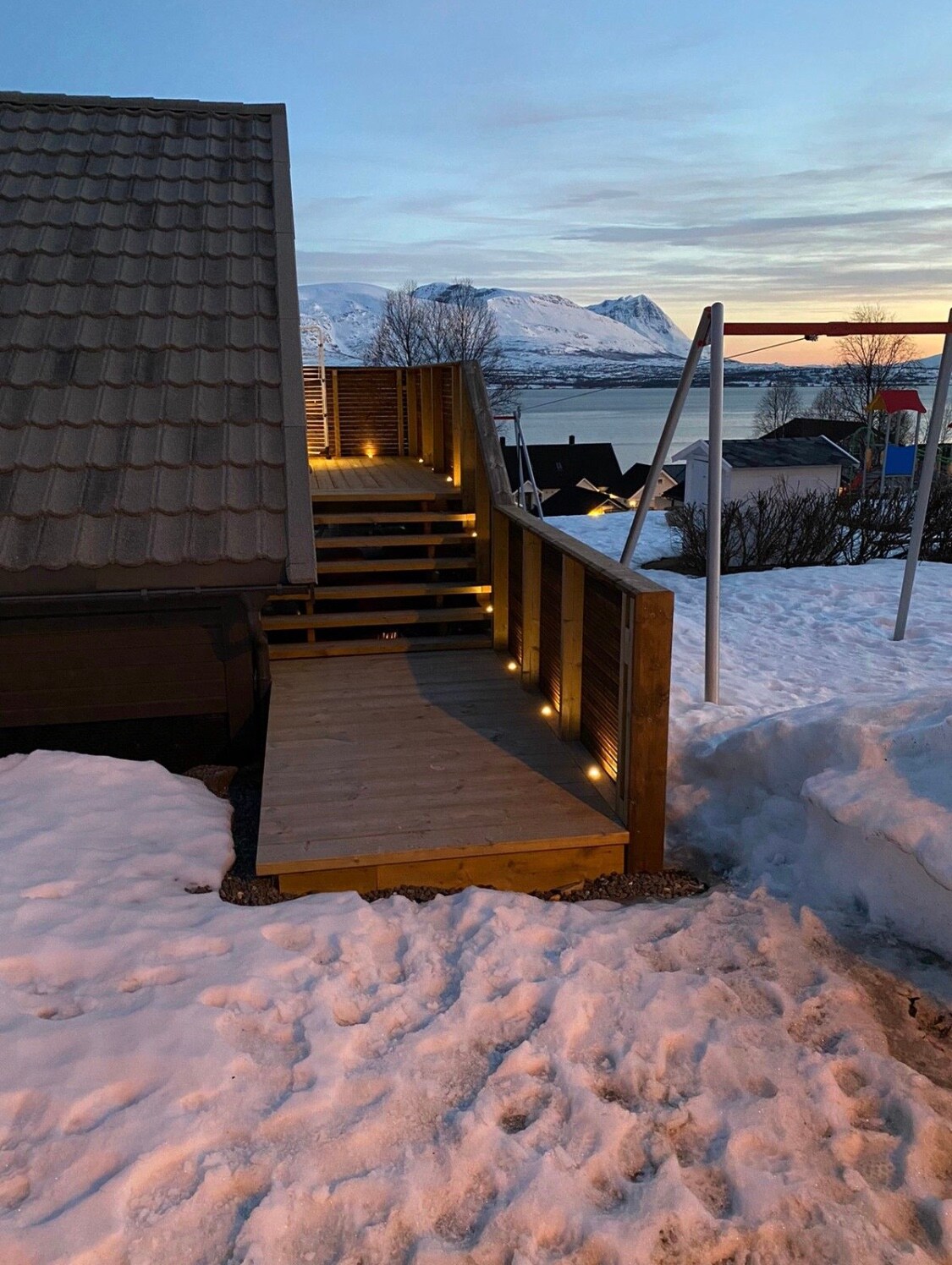Aproape de tot! 1 minut de mers pe jos de magazin alimentar, stație de autobuz la 1 minut de mers pe jos, 20 de minute de mers pe jos de centrul orașului Tromsø, 5 minute de mers pe jos de telecabină și Ishavskatedralen. Apartamentul împarte ușa din față cu casa principală, dar are propria intrare în casă. Are propria bucătărie, baie, living și un pridvor magnific de 30 m², cu vedere la Tromsø! Și poți vedea luminile nordului de pe verandă.