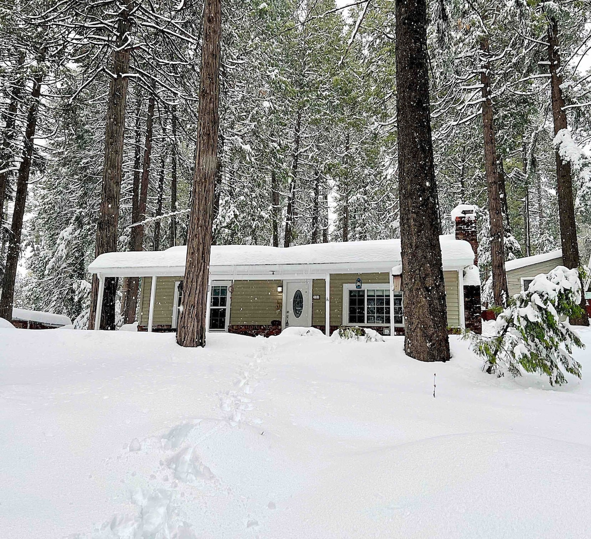 5 mi până la hwy 80, 10 mi până la Grass Valley. 96 până la 535 mbps.EV-2 încărcător. 20 $ pe câine pe zi. 20 $ pentru utilizarea căzii cu hidromasaj, pe ședere. Doc pentru bărci 1 milă. Partea ta privată a cabanei are intrare privată în propriile 3 camere: LR/zonă de luat masa, șemineu, 2 br și 1 1/2 baie. Fără bucătărie, dar avea cuptor cu microunde mic, filtru de cafea, grătar, aragaz în aer liber. Pat BR 1 Q, BR2 2 paturi twin. LR are televizor + Q Sofabed, fotolii și șemineu. Utilizarea verandei, a terasei din spate, a vetrei de foc. Parcare foarte mare. Complet împrejmuită.