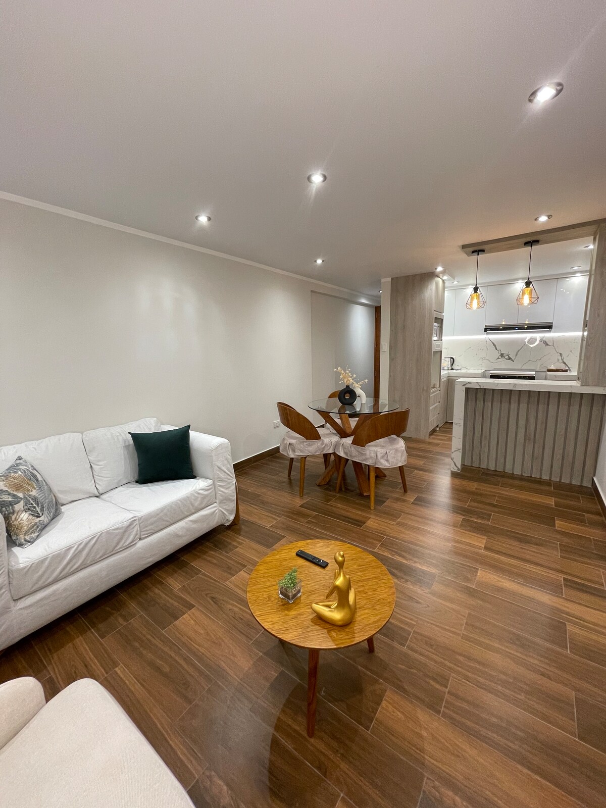 Departamento amplio con 115 m2 , elegante alojamiento con sala comedor y cocina americana de concepto abierto, es ideal para viajes en familia y por negocios, totalmente equipado para corta o larga estadía, esta ubicado en piso superior con potente iluminación natural y ventilación, con espacio para juego de niños. ( hay servicio de early check in y late check out con un valor adicional, segun disponibilidad )