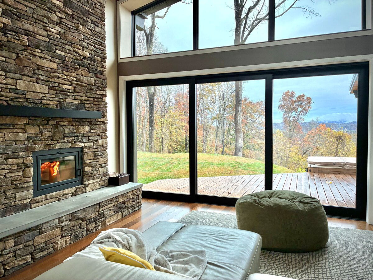 Există șanse ca, odată ce ajungi, să nu mai vrei să pleci, așa că nu mai cheltui nimic pe escapada ta! Casă modernă cu 38 de ferestre și luminatoare. Mobilier viu artizanal, canapea din piele, cadă cu hidromasaj de lux, Wi-Fi de mare viteză, cablu premium, sistem Sonos cu 10 difuzoare, lumini care schimbă culoarea, pat de zi leagăn, gropi de foc și 1/4 mile de cascade în cascadă și o milă de trasee și alei de drumeții și alei și toate sunt private. În plus, încărcare gratuită a vehiculelor electrice.