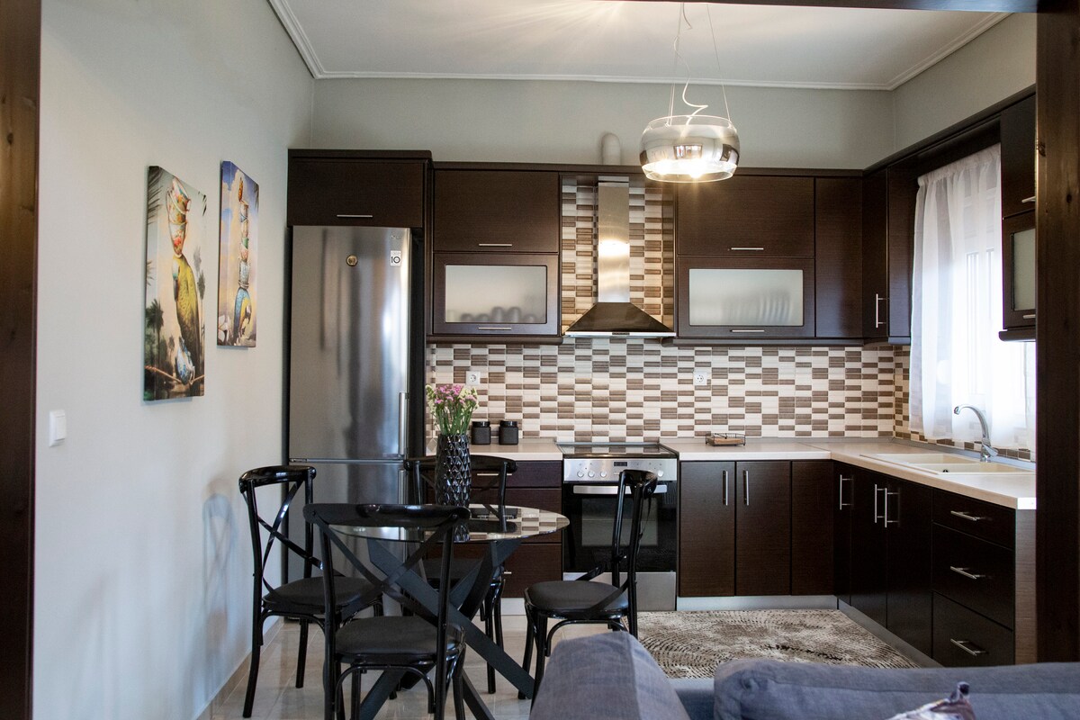 Luckyhome este un apartament liniștit, zen, unghiular, panoramic, spațios și însorit, la etajul 1. În 3 minute ajungi la muzeele orașului. Pe o rază de 50 de metri găsești totul: cafenea, brutărie, farmacie, supermarket și la 10 minute de mers pe jos de strada pietonală principală din Asklipios!Încălzire autonomă (gaz) și aer condiționat. Recent renovat cu decor minimalist. Bucătărie utilată, loc de parcare disponibil întotdeauna, sub casă. Aveți vedere la parc.