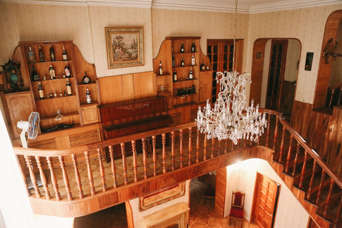 Această casă fermecătoare, rustică din Telavi, a aparținut odată bunicilor mei și a fost construită la începutul secolului al XX-lea în stil georgian autentic, folosind pietre mari de râu, cărămizi roșii și cu un balcon spațios din lemn. De aici, te poți bucura de priveliști uimitoare ale străzilor din Telavi și ale munților caucazieni uluitoare. În timpul renovării noastre, ne-am asigurat că păstrăm stilul și decorul original al locuinței.