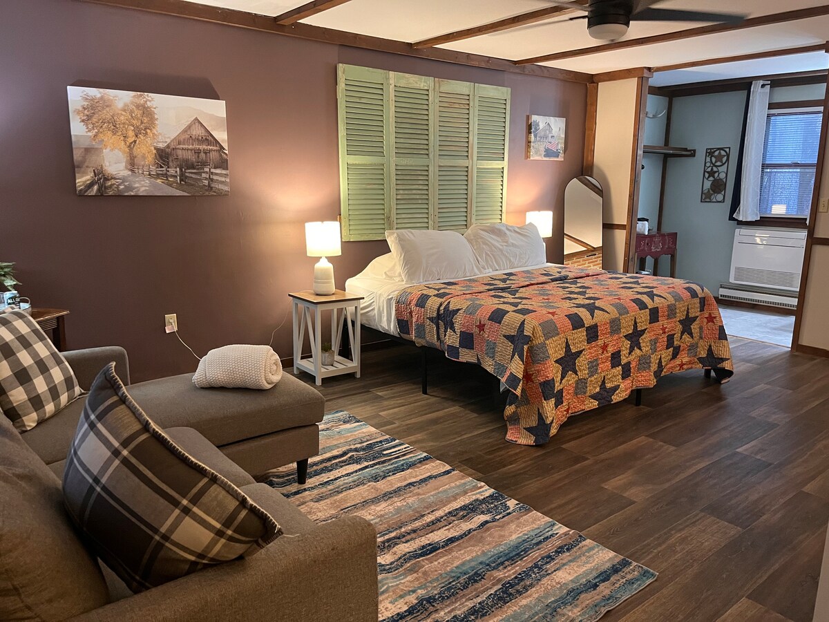 Bine ai venit la The Sleeping Bear Retreat. Suntem o proprietate unică, care se întinde pe peste 6 acri, din cel mai frumos cadru montan împădurit. Suntem la aproximativ 6 minute de centrul orașului și de magazinele uimitoare și de scena culinară a lui JT. PennsPeak, Paintball, Rafting pe râu, schi, drumeții și ciclism uimitoare, toate în apropiere! Aceasta este o garsonieră privată, cu intrare privată, detașată de casa principală. După ce aventurile zilei sunt complete, vei fi confortabil, cald și relaxat!
