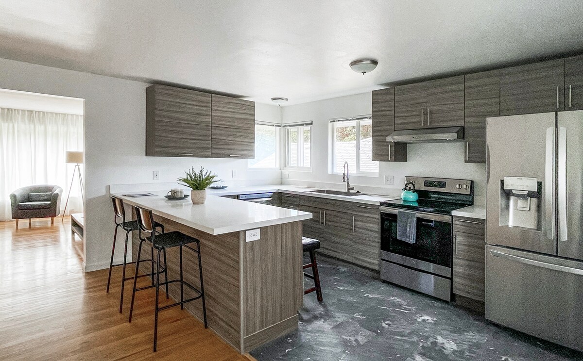 Odihnește-te și relaxează-te în pace și confort. Lenjeria de pat, prosoapele și toate suprafețele de calitate hotelieră au fost curățate cu meticulozitate la cel mai înalt standard înainte de sosire. Câteva lucruri care îți vor plăcea: Comoditate ★superbă: la mai puțin de o milă de aeroportul Seatac și de calea ferată ușoară. În termen de 2 minute de mai multe autostrăzi în Seattle Living cu concept deschis★ fantastic, bucătărie și spațiu de luat masa Wi-Fi de★ mare viteză, TV Smart 4KTV de 65 inch bucătărie ★complet utilată, cu aragaz, cu aragaz terasă ★mare și grătar Weber