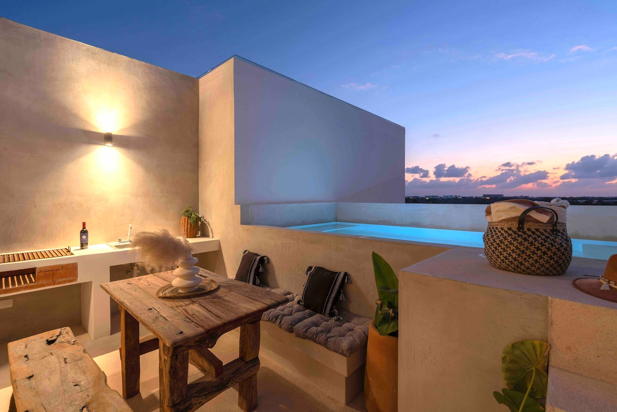 Evadează în oaza ta privată din Tulum! 🏝️ Acest penthouse luxos are un dormitor spațios și o terasă spațioasă cu o piscină privată perfectă pentru a te bucura de soare și pentru a te bucura de băi răcoritoare. 🏊♀️ Relaxează-te pe șezlonguri confortabile, savurează cocktailuri și savurează briza tropicală caldă. Situat la câteva momente de plajă, este poarta ta de acces către aventuri de neuitat în Tulum. ✨ ✨ Rezervă-ți șederea astăzi și experimentează paradisul ! 🤩