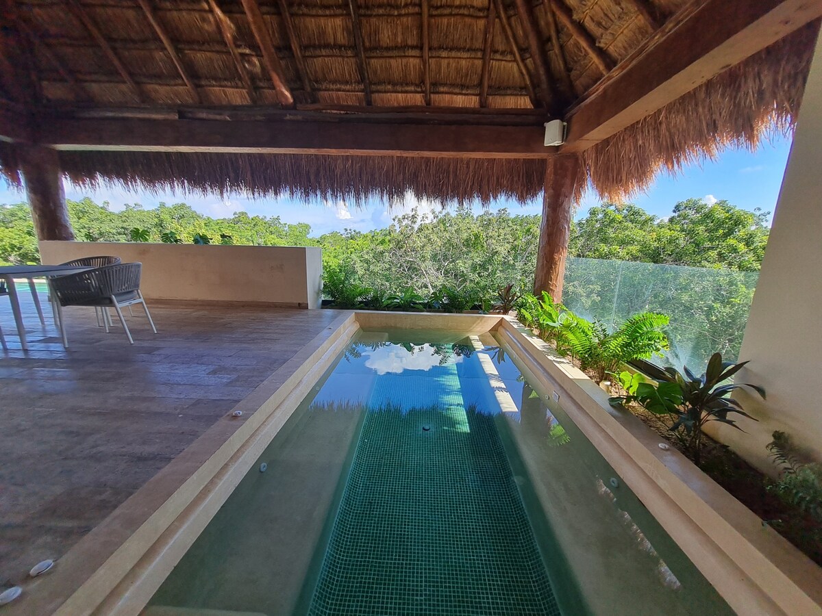 Evadează în oaza ta privată din Tulum! 🏝️ Acest penthouse luxos are un dormitor spațios și o terasă spațioasă cu o piscină privată perfectă pentru a te bucura de soare și pentru a te bucura de băi răcoritoare. 🏊‍♀️ Relaxează-te pe șezlonguri confortabile, savurează cocktailuri și savurează briza tropicală caldă. Situat la câteva momente de plajă, este poarta ta de acces către aventuri de neuitat în Tulum. ✨ ✨ Rezervă-ți șederea astăzi și experimentează paradisul ! 🤩