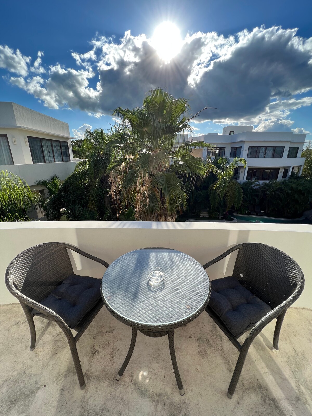 Casa ta de vacanță departe de casă; ideală pentru cupluri, nomazi digitali sau călători singuri. Cu internet rapid, dormitor cu pat king-size, unitate de aer condiționat, chicinetă și piscină cu balcon. Vei avea acces la zone comune incredibile, cum ar fi piscina de pe acoperiș, jacuzzi și multe altele. Una dintre cele mai convenabile locații, vei fi la câțiva pași de unele dintre cele mai bune restaurante, magazine și supermarket; și aproape de plajă. Vei avea tot ce ai nevoie pentru a trăi experiența Tulum.