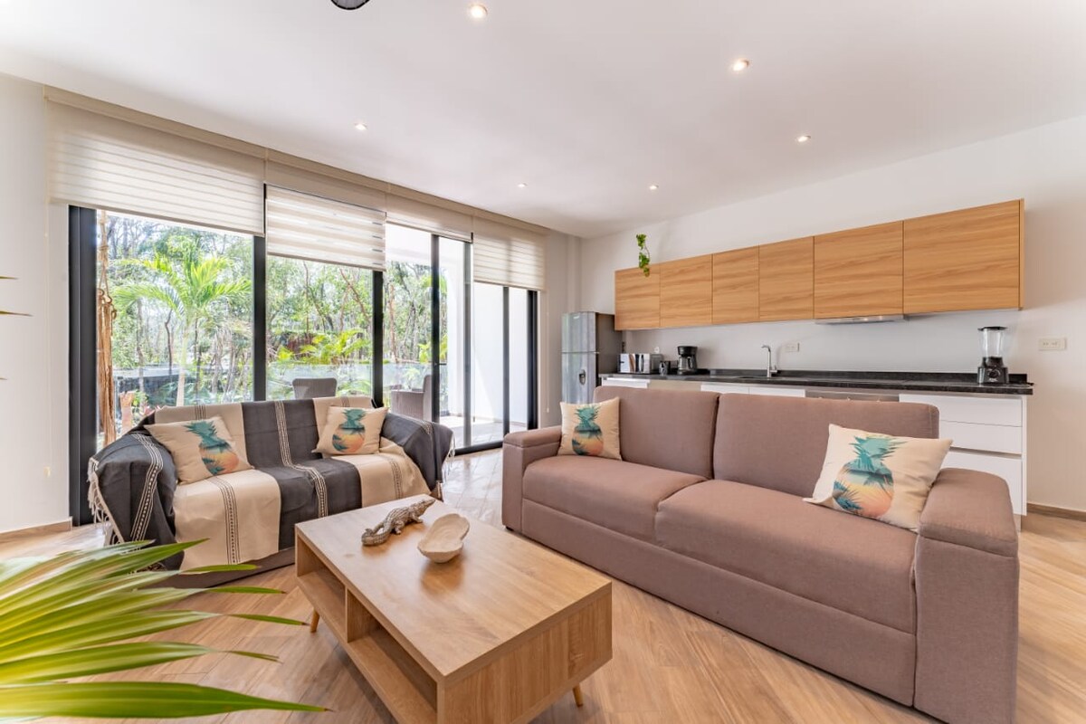 Bine ai venit într-un apartament frumos, amplasat în vibranta La Veleta. Acest sanctuar cu două dormitoare este decorat cu gust, îmbinând confortul, stilul și funcționalitatea. Inima este un living confortabil, care se deschide spre o terasă și o piscină complet private, oferind tot ce ai nevoie pentru o ședere memorabilă. Acest apartament se află în interiorul complexului de tip boutique Chukum Nah, cu doar 9 unități exclusive inspirate de filosofia Wabi-Sabi, care urmează să fie definită ca o eleganță subevaluată, cu accent pe o mentalitate mai mică.