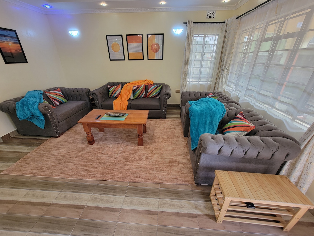 Welcome to this stylish modern villa located in a secure and peaceful neighbourhood, just 7 minutes’ drive to Nakuru CBD. The villa features four spacious en-suite bedrooms, each with its own balcony. An additional upstairs room serves perfectly as a movie room or bedroom. The home is fully equipped for both short and long stays. A power backup system ensures uninterrupted comfort, while a house manager is available to assist when needed. Families with babies - a baby cot bed is available