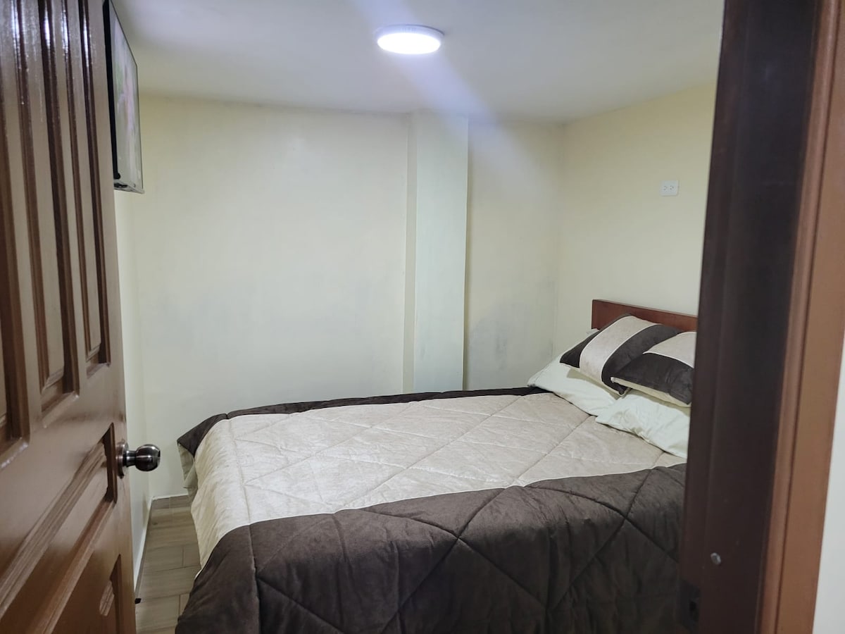 Disfruta de una estancia cómoda y tranquila en nuestro encantador departamento, ideal para una o dos personas. El espacio cuenta con: • Wi-Fi Rápido: Conexión estable y velóz para que trabajes o te entretengas sin interrupciones. • Televisión: Para disfrutar de tus series y películas favoritas. • Baño privado: Ideal para relajarte después de un día ajetreado. • Cama Matrimonial: Cómoda y amplia, perfecta para un descanso reparador. Disfruta tu estancia!