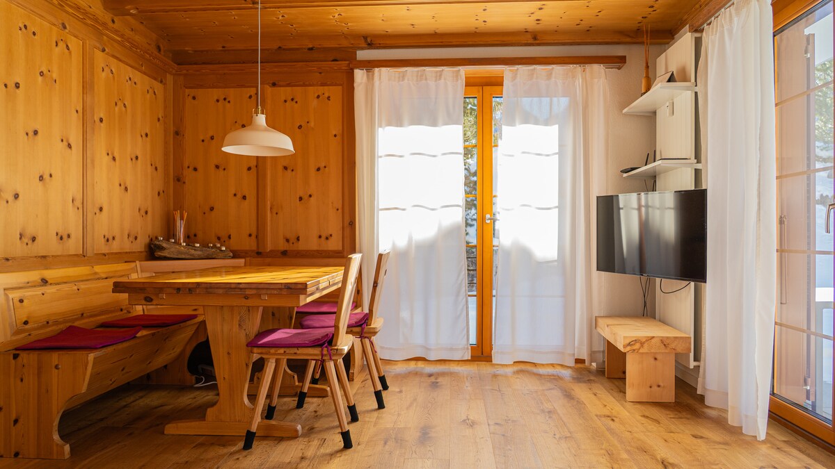 Cozy and bright studio apartment equipped with everything you need for a perfect stay in Engadin. The apartment is located in a quiet and sunny area and is distinguished by its warm and well-finished style. It is a five-minute walk from the Marguns ski lifts, which lead to the St. Moriz ski area. Both in summer and winter, it is the perfect base for walks and sports activities (cross-country skiing, ice skating, cycling, tennis, golf, fishing) in the region.