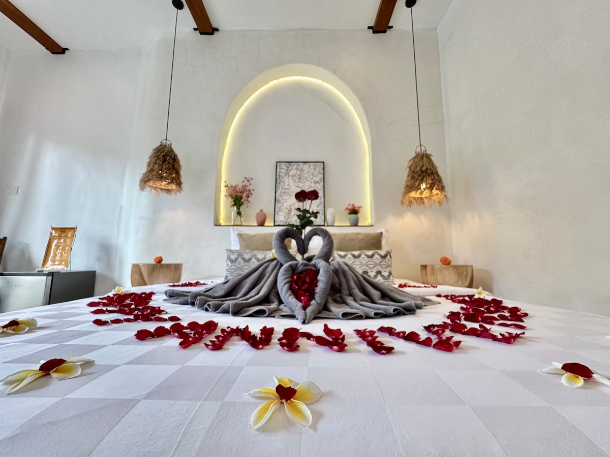 Această vilă este o combinație perfectă între conceptul Balinese-Tropical-Minimalist, dedicat pentru cuplu /luna de miere sau călător solo care caută un loc romantic și relaxant pentru a rămâne în Ubud, deoarece este ca un loc într-o grădină ascunsă și ascunzătoare de agitația orașului, are o Ace-locație care aproape de cele mai multe locuri trebuie vizitate în Ubud, la 5 minute de mers pe jos de străzile principale Ubud în cazul în care cele mai multe magazin, cafenea, restaurant sunt, aproape de pădurea Monkey, piața Ubud și palat.