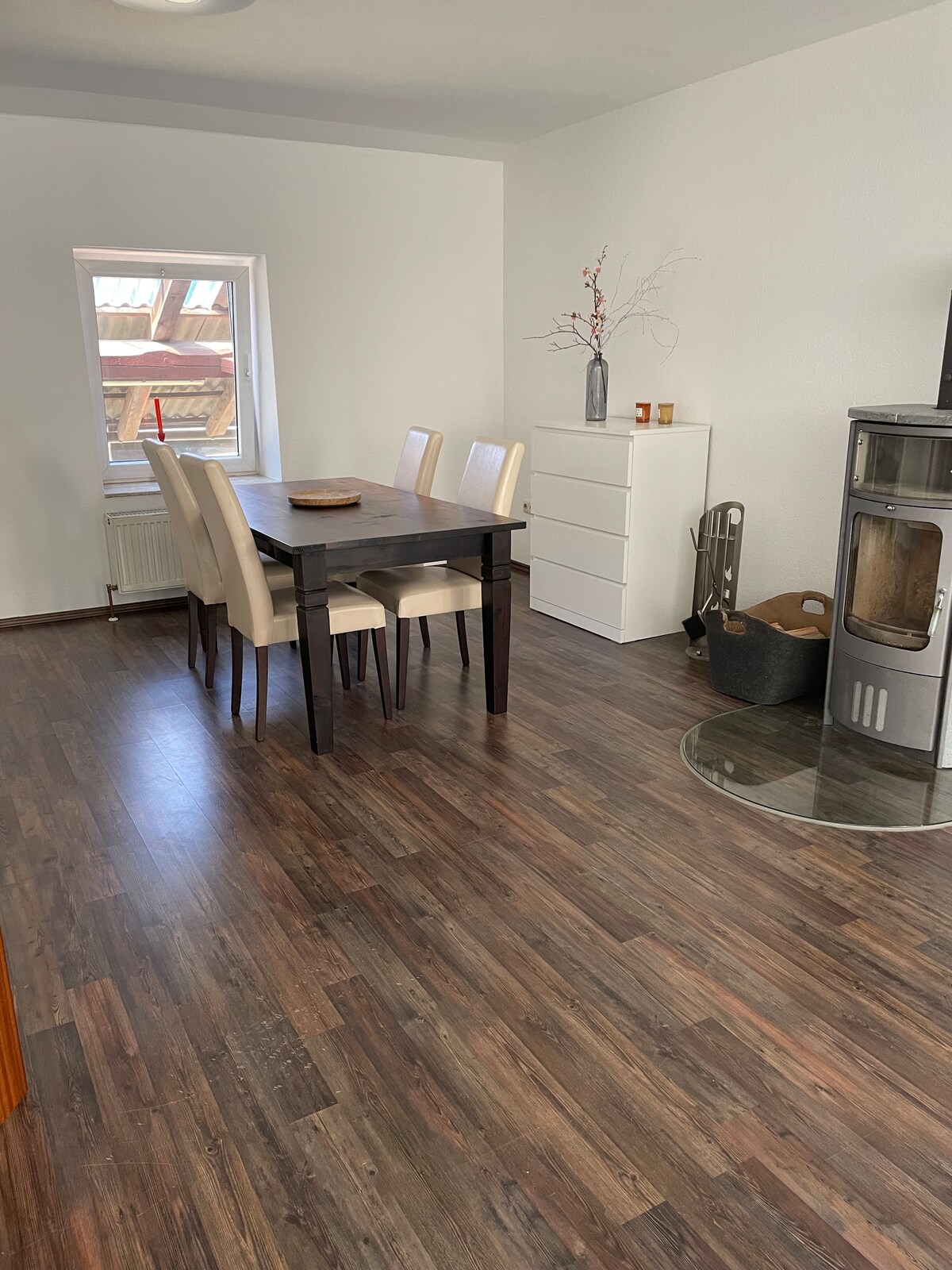 Lux trăind în vechile ziduri ale fostei păduri Riddagshausen: Seara, așezați-vă confortabil pe pielea de oaie într-una dintre pervazurile largi ale ferestrei, cu vedere la grădina ca de parc a "Stadt-Land-Scheune". Bucură-te de lumina pâlpâitoare a șemineului cu gaz sau gătește cu prietenii pe insula de gătit. Fiti incantati arhitectural de inaltimea camerei si de structura impresionanta a acoperisului. WC cu duș japonez. Saltele și bufet de perne de la Tempur pentru dormit ca pe nori.