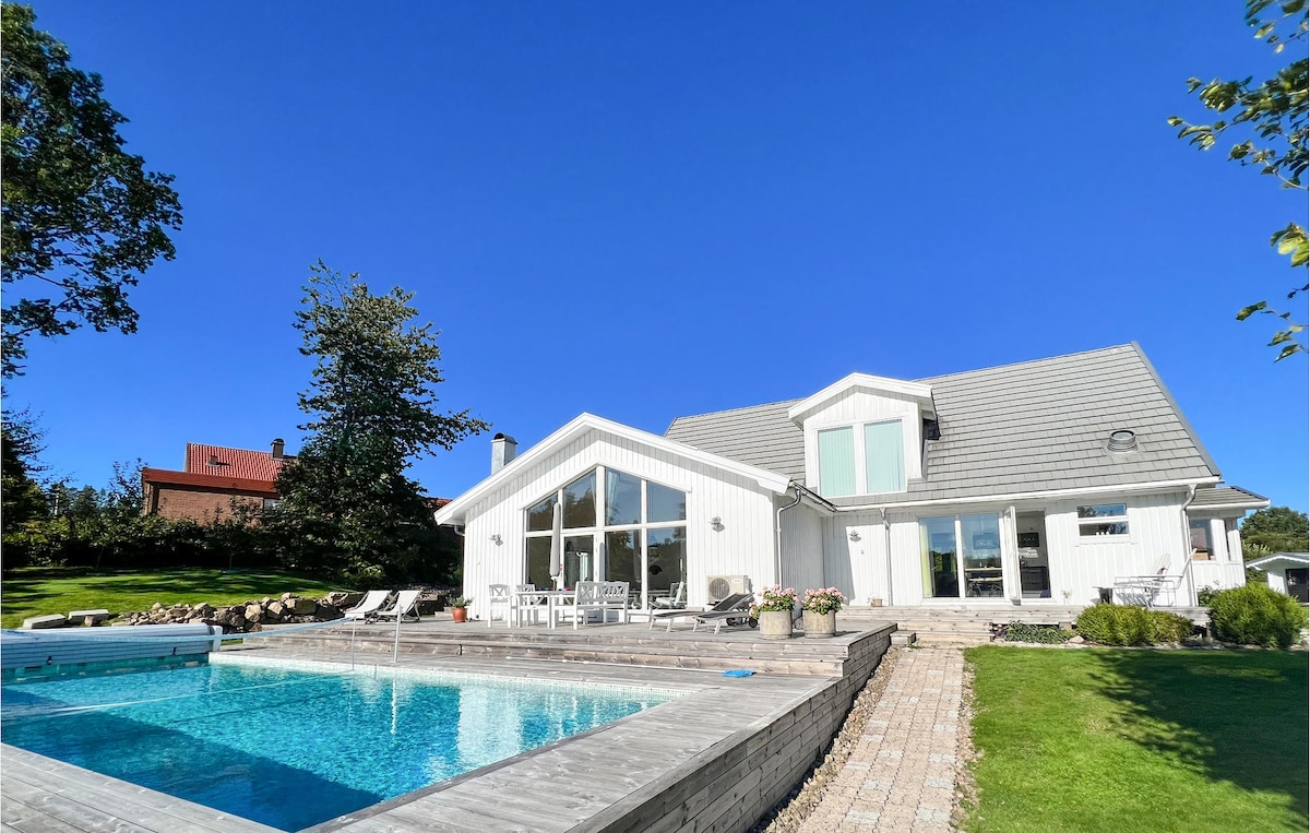 Ascunzătoarea ta scandinavă de la marginea pădurii: o cabană modernă, plină de lumină, de 75 m², cuibărită în verdeață, cu detalii de design atente. Bucură-te de camera de zi cu vedere panoramică la pajiști șipăduri, o saună privată cu aburi și liniște absolută. Un dormitor plus un birou flexibil/cameră pentru copii cu canapea extensibilă, bucătărie complet utilată, zonă de living deschisă și o grădină vastă pentru familii. Lacuri, trasee de drumeții și ciclism la ușă, Göteborg la numai 1,5 ore distanță – oprește-te cu ușurință!