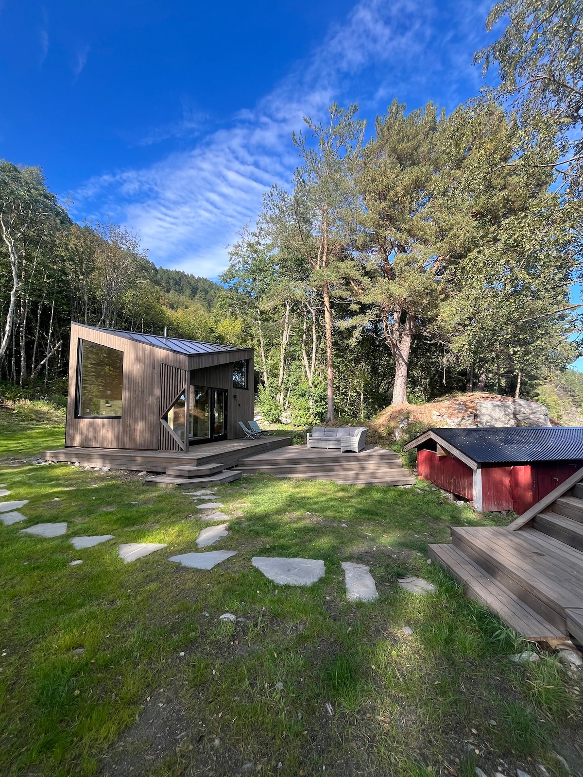 Apartament nou lângă fiord, cu barcă și jacuzzi