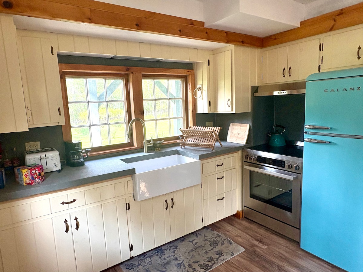 O suită complet privată, de 57,6 m², cu intrare proprie. Ferma americană veche este pusă în valoare de o chicinetă minunată, un duș cu abur fierbinte și mobilier original MCM. Locuim de cealaltă parte a acestei case coloniale din anii 1800, cu arcade. Te rugăm să reții că chicineta are o plită cu inducție și un prăjitor de pâine cu aer cu convecție. Este excelent pentru gătit ușor. Cere un grătar pentru gătit carne și alimente grase. Suntem o pensiune zonată cu închirieri de biciclete. Pentru mai multe informații, consultă hambarul și bicicleta, llc.