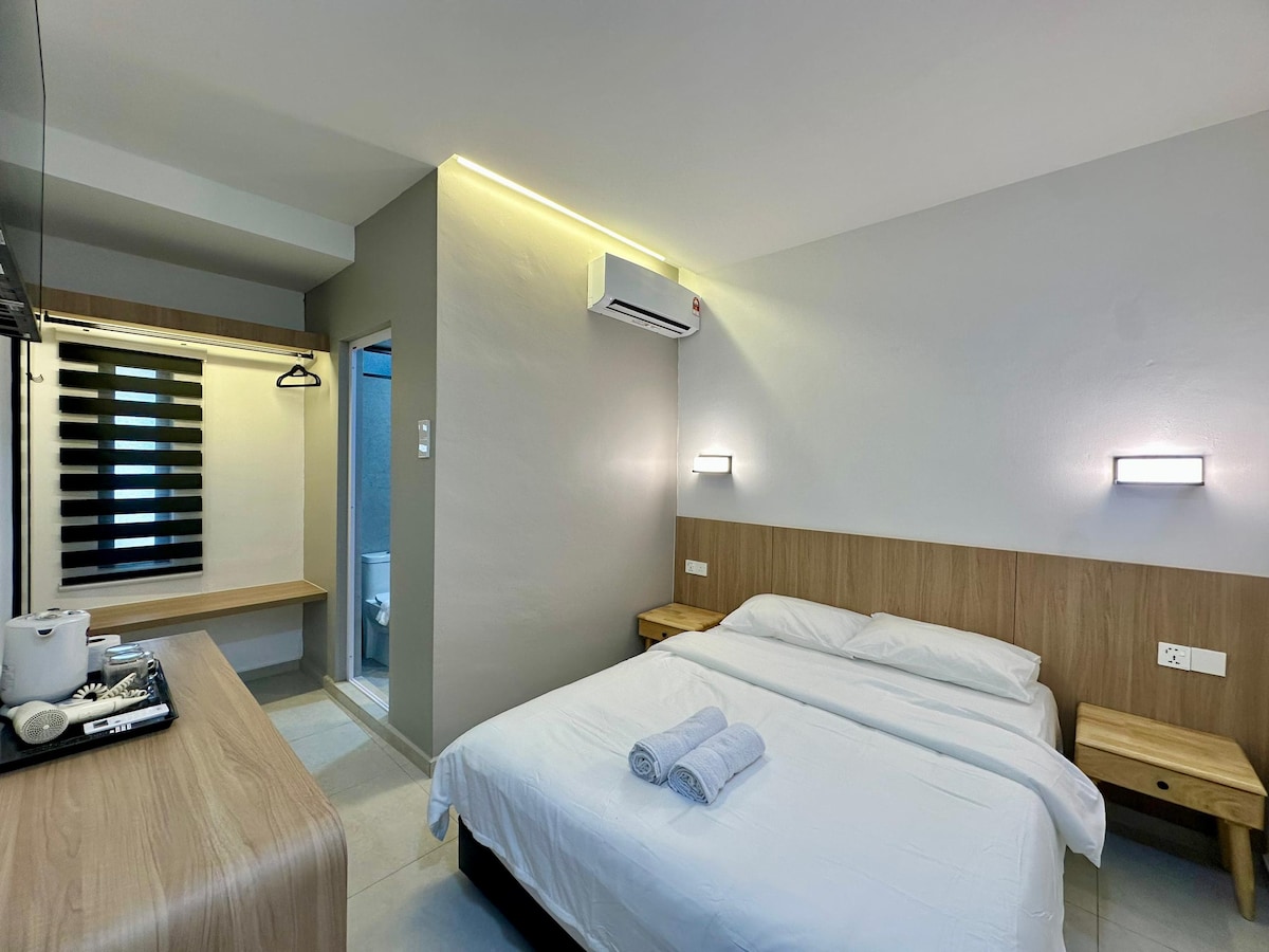 Relax in this neutral minimalist-style guest room, thoughtfully designed for a calm and comfortable stay. Featuring soft tones, clean lines, and warm lighting, the room offers a peaceful retreat after a long day.