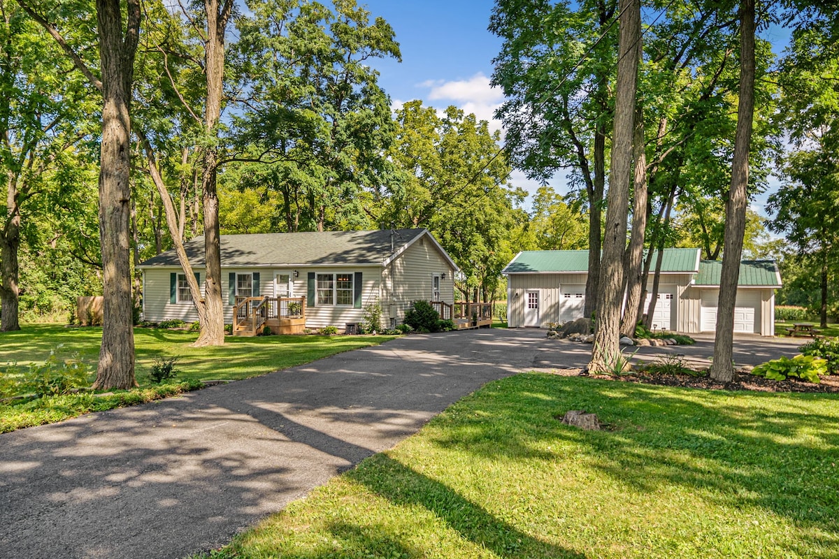 Găsește-ți oaza în această căsuță elegantă de la marginea orașului Itaca. Explorează în aer liber cu 85 de acri de pădure, pășuni și iazuri cu trasee largi excelente pentru drumeții și schi fond! Aprinde grătarul și ia masa al fresco pe una dintre cele trei punți, apoi încălzește-te lângă vatra de foc. Bucură-te de liniștea împrejurimilor naturale, rămânând în același timp la o aruncătură de băț de numeroasele atracții din Itaca, inclusiv parcuri de stat, mese, universități, trasee vinicole și multe altele.