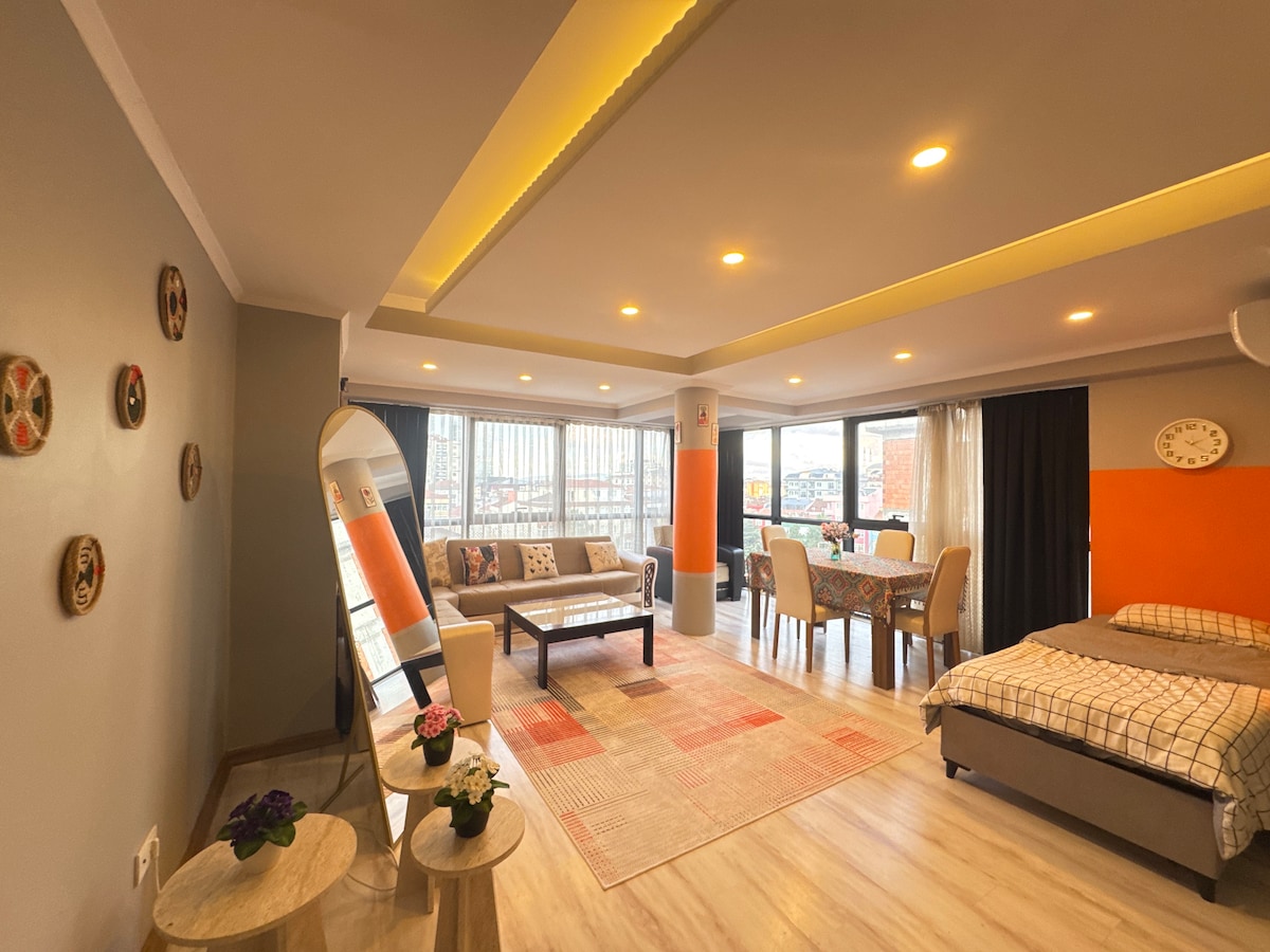 Bine ai venit în apartamentul nostru modern și confortabil 1+1 din centrul orașului Istanbul. Îți poți pregăti mesele în bucătăria complet utilată și te poți bucura de confortul casei tale cu un televizor inteligent și Wi-Fi de fibră optică de mare viteză.Poți găsi întotdeauna un loc de parcare în apartamentul nostru situat într-o clădire cu securitate non-stop. Ești la câteva minute de mijloacele de transport în comun, de magazine și de restaurante. Dacă aveți întrebări în timpul sejurului, există un membru al personalului disponibil 24/7 pentru a vă ajuta.