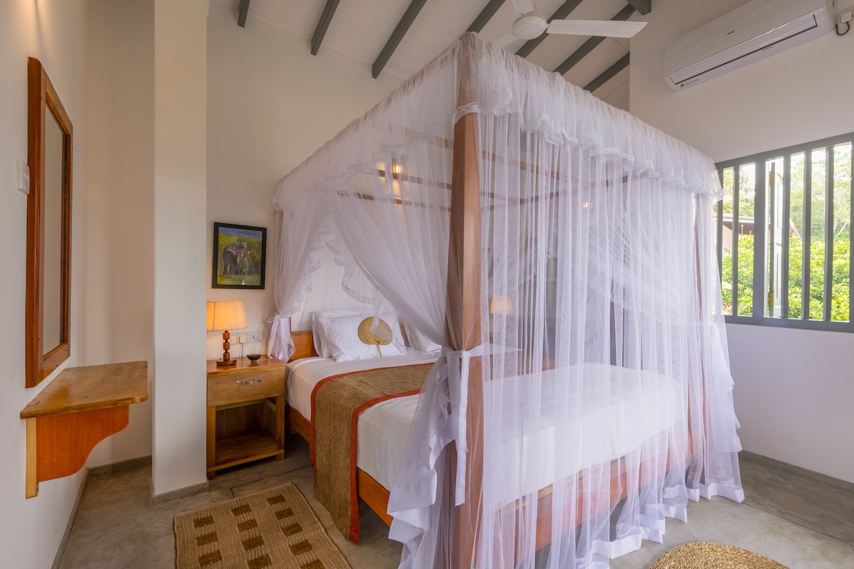Bine ai venit în casa noastră încântătoare, elegantă, cu 1 dormitor, amplasată în mijlocul frumuseții liniștite a câmpurilor luxuriante de paddy. O ședere unică și de neuitat te așteaptă la noua noastră vilă unică. În momentul în care ajungi, vei fi captivat de împrejurimile idilice ale acestui refugiu fermecător. Imaginează-ți că te trezești în foșnetul copacilor de bambus și simfonia chemărilor păsărilor. Această ascunzătoare rafinată este concepută pentru a te cufunda în natură, cu acces facil la plaje uimitoare și fort istoric Galle.