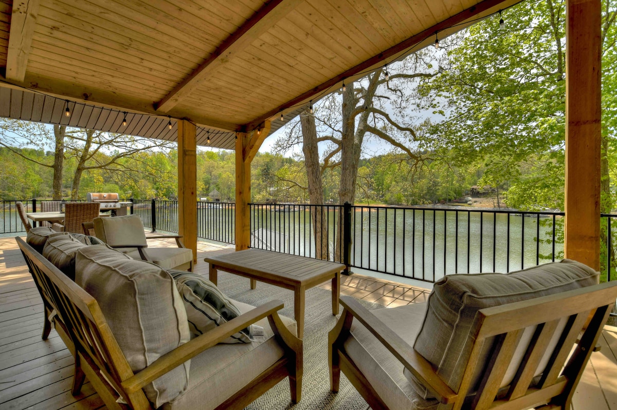 @MountainLakeBeach presents our popular Lake Nottely cottage with terrific Mountain View’s and year round deep water. Beautifully renovated 2000 sq ft lakeside cottage has 3 bedrooms and 3 full bathrooms sleeping up to 8 people (6 adults max) and is dog friendly. We provide a Weber gas grill, a fully stocked kitchen, linens and bedding, Flat screen TV, fast WiFi and Seasonal water toys (2 tandem kayaks, 2 paddle board and lily pad, - Boat NOT included) *furnishings & bedding may change