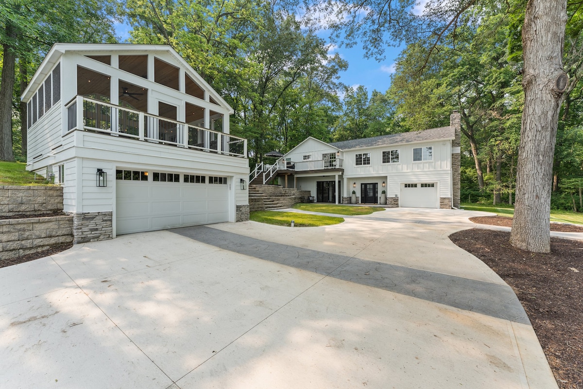 Escape to the Culver Haus, a stunning design-forward remodel perfect for groups. This 4-bedroom retreat sleeps 9 and features a chef's kitchen, game room, and a private acre with a fire pit and screened-in porch. Enjoy luxury and comfort just minutes from Culver Academies and the marina. Ideal for families and design lovers seeking a serene getaway with high-end amenities.