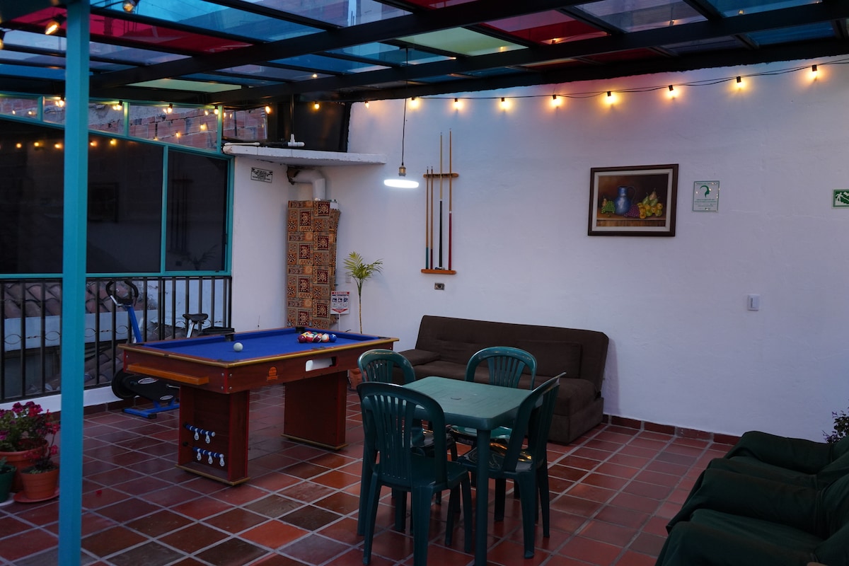 Ubicado en La Candelaria, centro histórico y turístico de Bogotá, Casa colonial de 300 mt con 3 apartamentos que comparten una entrada y patio central. El check in es autónomo, te doy el código para la puerta principal y las llaves en el apto. Un delicioso desayuno esta incluido, para prepararlo por ustedes mismos. Además podrán disfrutar de mi hostal Botánico ubicado en la esquina cuando deseen su bar-restaurante y terraza con vista de toda la ciudad, clases de yoga y más.