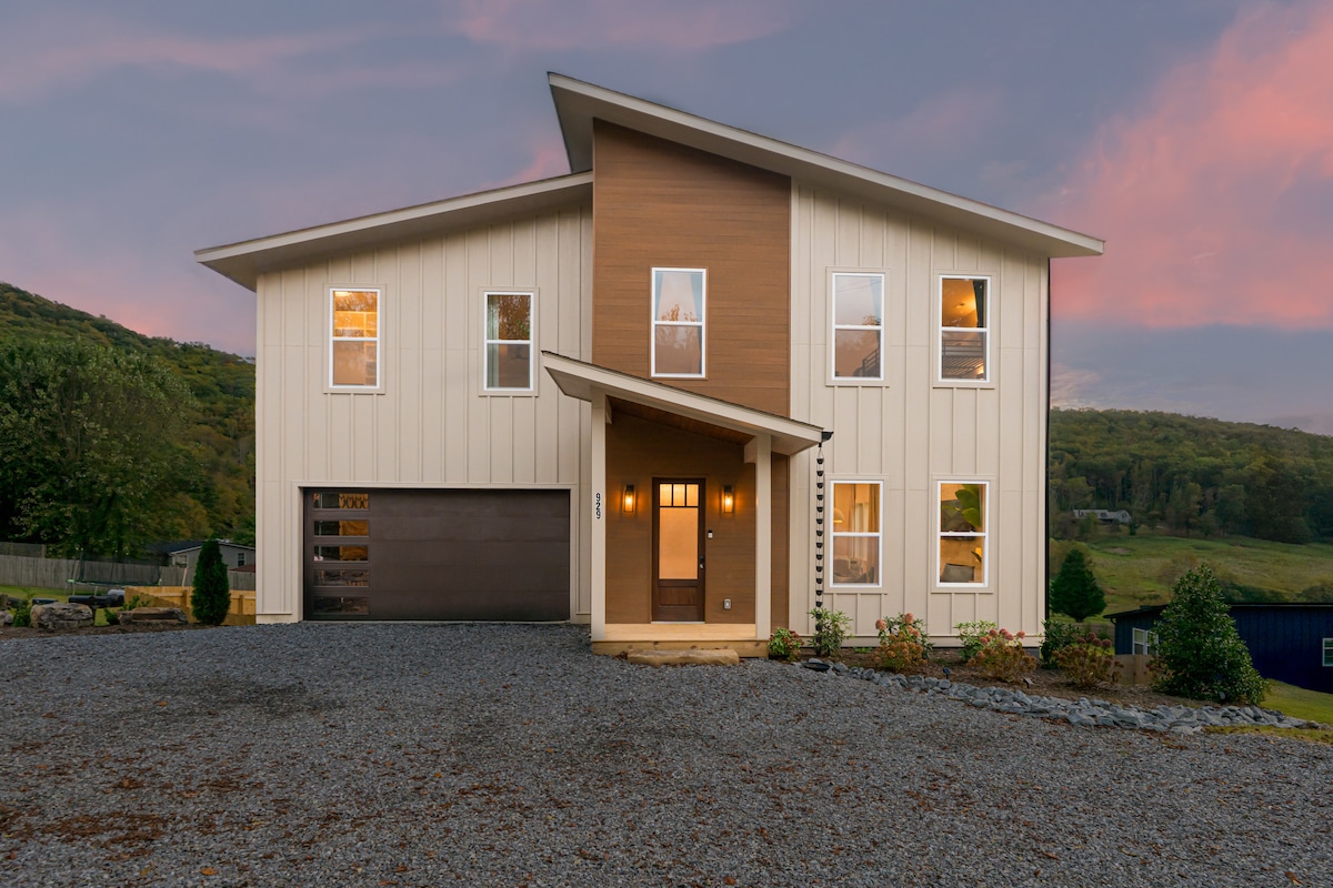 La aproximativ 18 minute de centrul orașului Asheville. Acest refugiu boho-chic a fost frumos proiectat, cu dotări moderne și se mândrește cu vedere la munte pe tot parcursul anului, pe distanțe lungi. Relaxează-te în cada cu hidromasaj și în saună, exersează punerea în mini-golf-ul nostru, gătește o masă gourmet în bucătăria noastră complet aprovizionată, bucură-te de mese în aer liber, vizionează un film sub stele sau pur și simplu prinde din urmă familia și prietenii lângă una dintre gropile noastre de foc.
