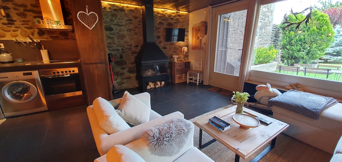 Relaxează-te în această cazare relaxată și elegantă. Apartament la parter cu grădină în casă independentă, în satul francez BourgMadame, la 5 minute de mers pe jos de Puigcerdà. Ideal pentru două persoane. Încălzire prin pardoseală. În împrejurimi te poți bucura de tot felul de activități în natură (schi, rachetă, drumeții, ciclism, ciuperci, băi termale, alpinism, călărie...) și gastronomie bună.